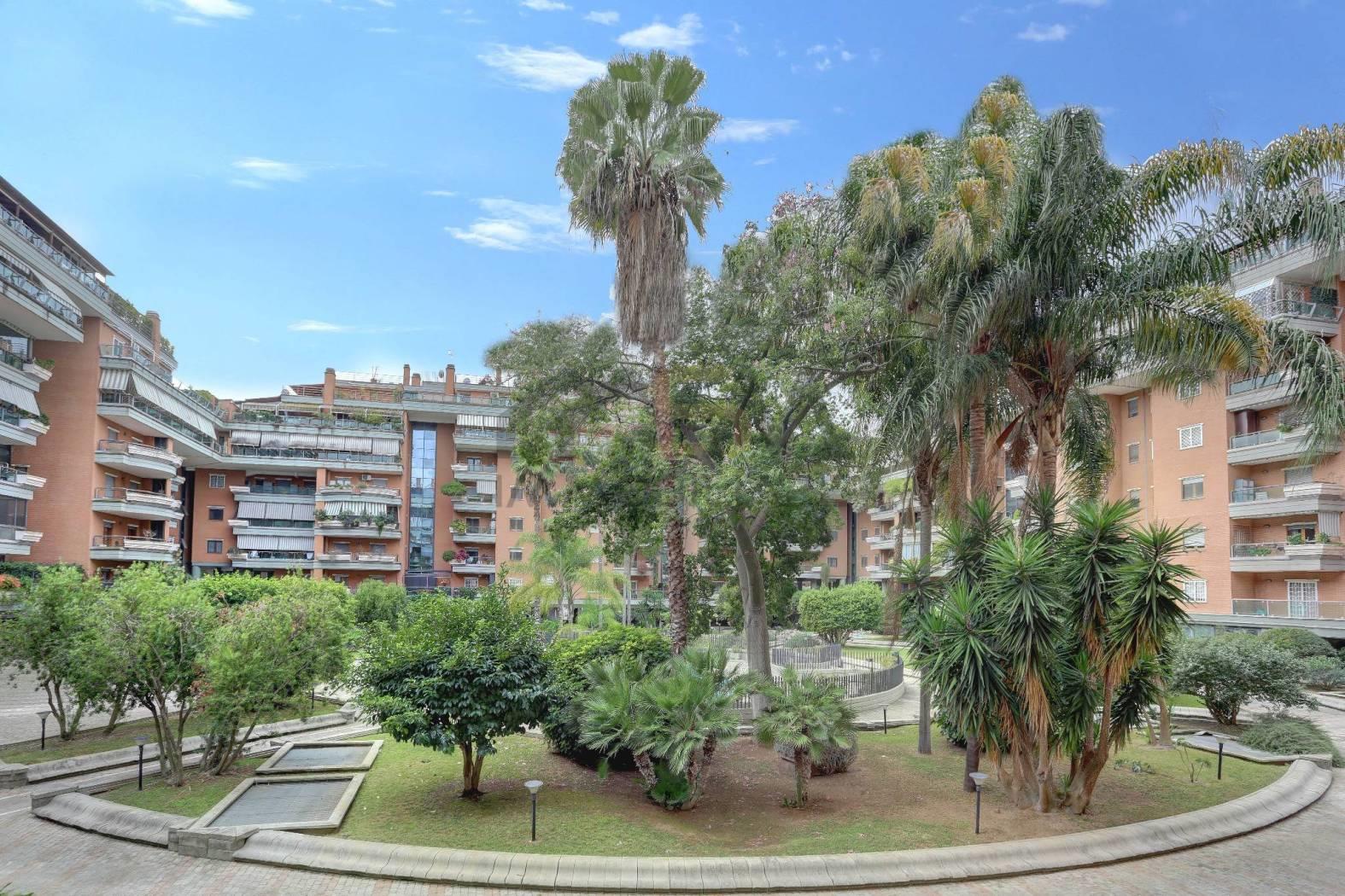 Il complesso residenziale di recente costruzione, è dotato di fontane e piscina interna con ampi spazi verdi comuni e alberi ad alto fusto.