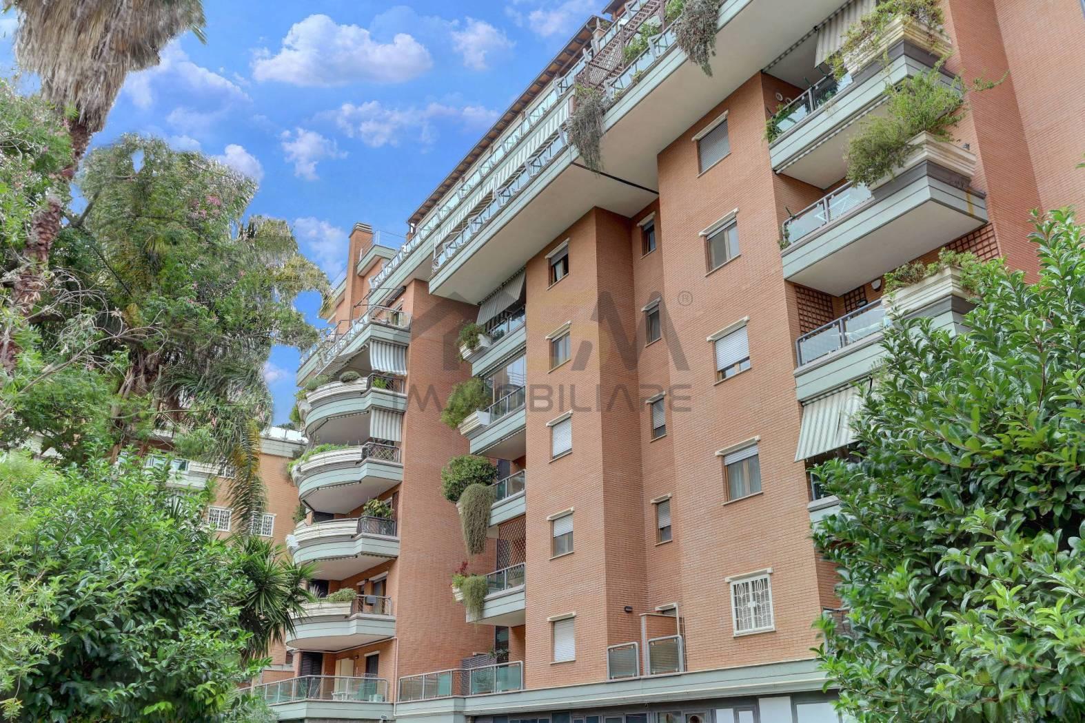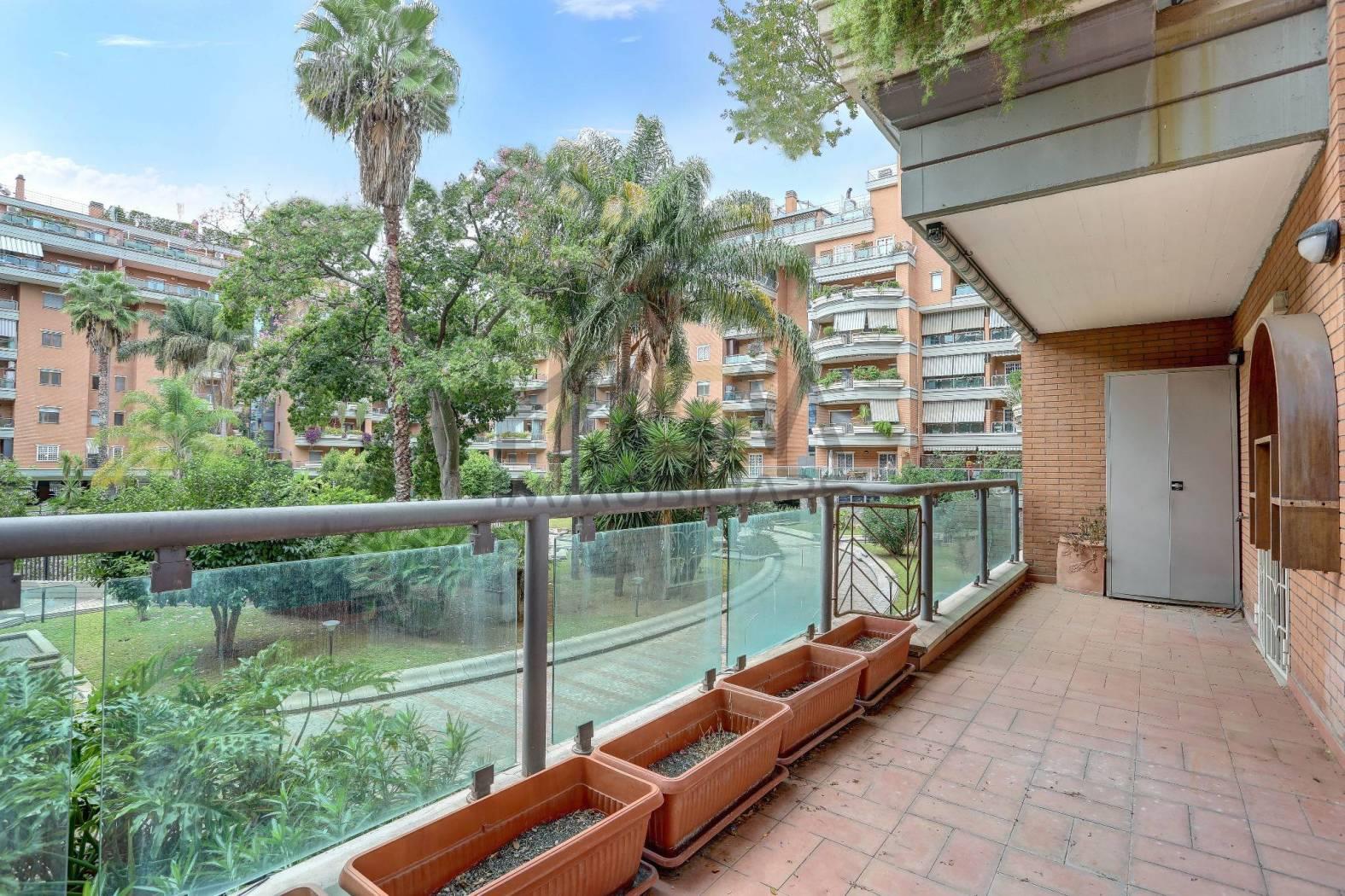 Eur Torrino, Via Oslo. In prestigioso complesso residenziale di recente costruzione proponiamo in vendita un appartamento di ampia metratura composto internamente da: doppio ingresso, salone, quattro camere, cucina abitabile, tripli servizi, due ripostigli, tre terrazzi ed un balcone. Completano la proprietà due cantine e due box auto.