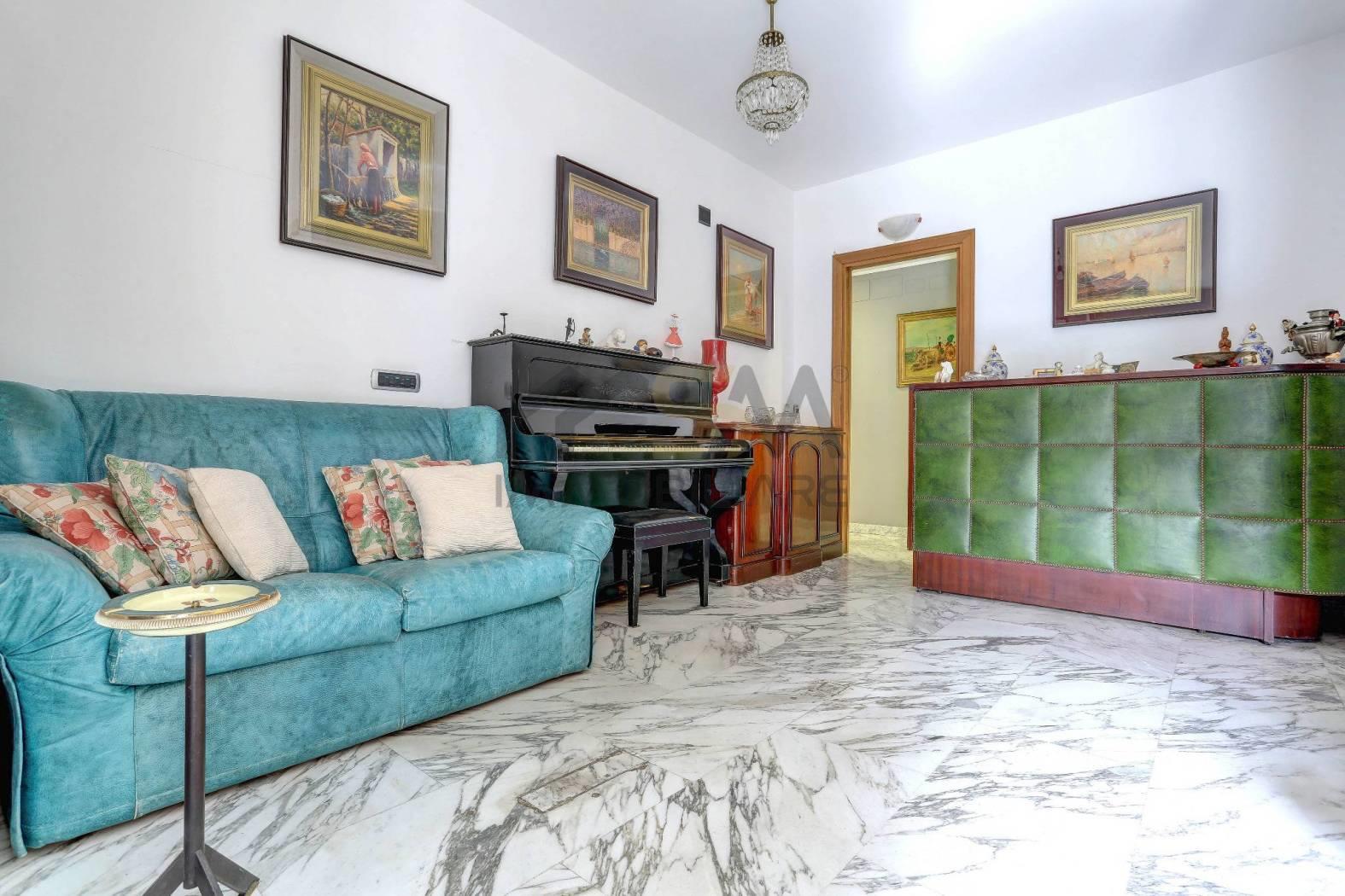L'immobile è dotato di pavimenti in marmo e parquet nelle camere, infissi in legno con doppi vetri, grate di protezione, avvolgibili in alluminio con blocchi di sicurezza.