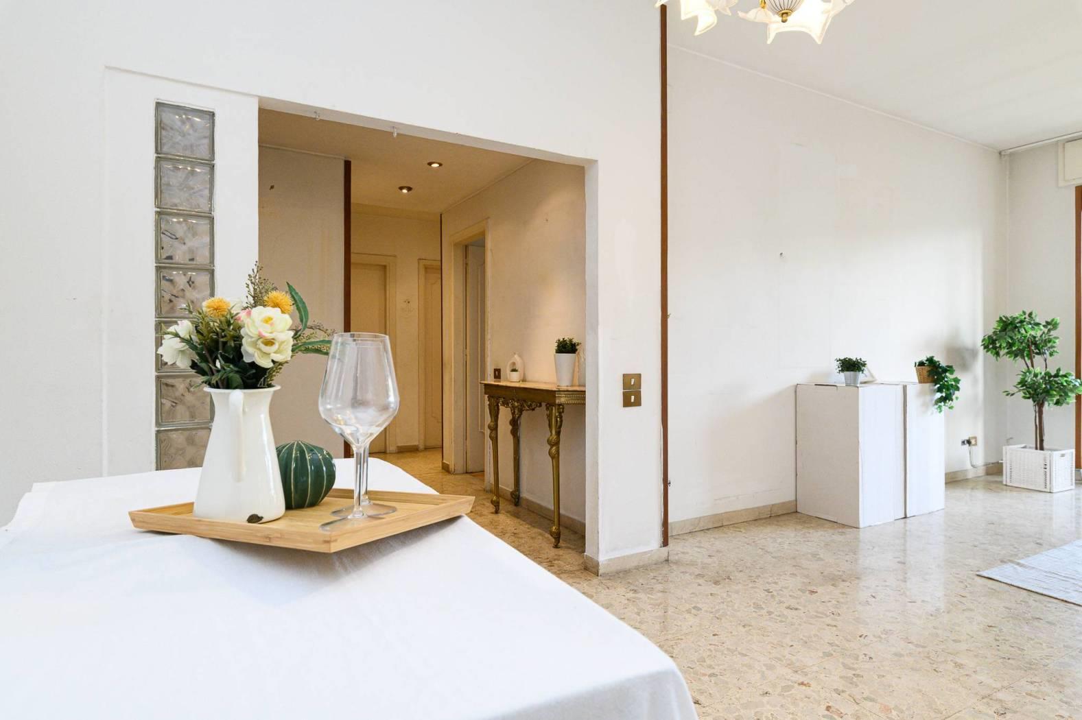 La Romana Immobiliare propone in vendita un ampio quadrilocale di circa 105 mq, posto al 4 piano di una palazzina di cinque piani in cortina.