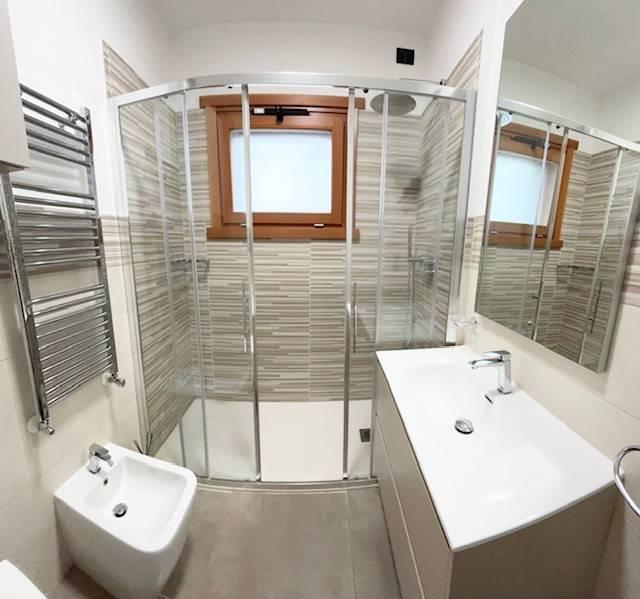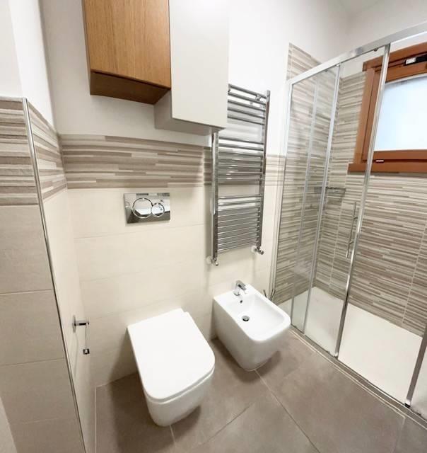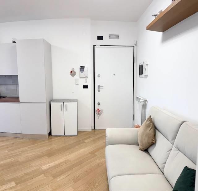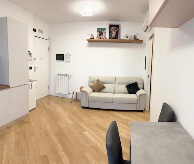 La proprietà è dotata di parquet in entrambe le stanze, infissi in legno triplo vetro, porta blindata, riscaldamento e acqua calda centralizzati, pannelli solari, serrande elettriche, zanzariere, aria condizionata e videocitofono. Euro 260.000.