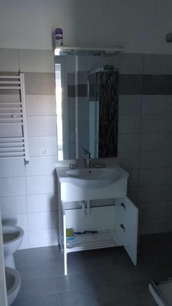 2) bagno, con sanitari nuovi, angolo per la lavatrice, e cabina doccia