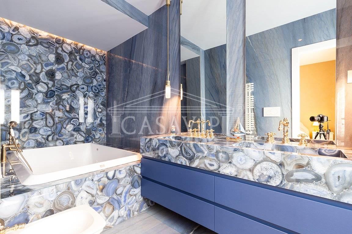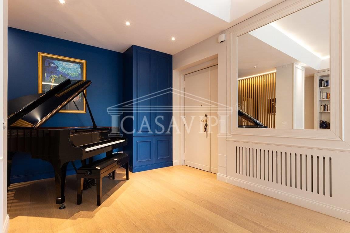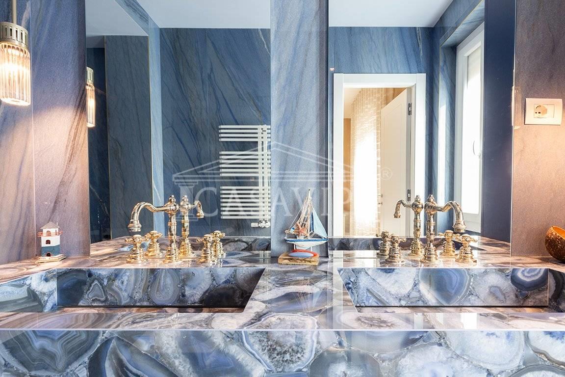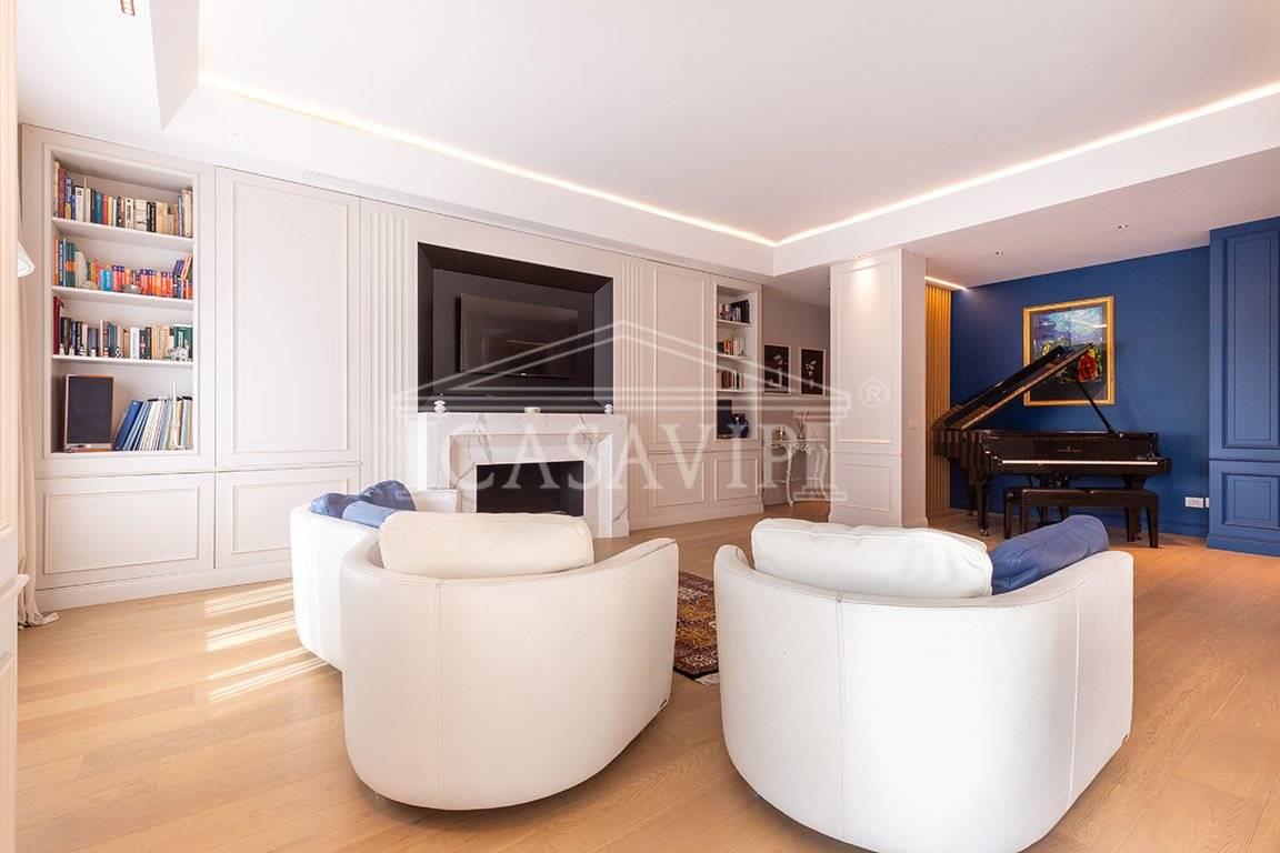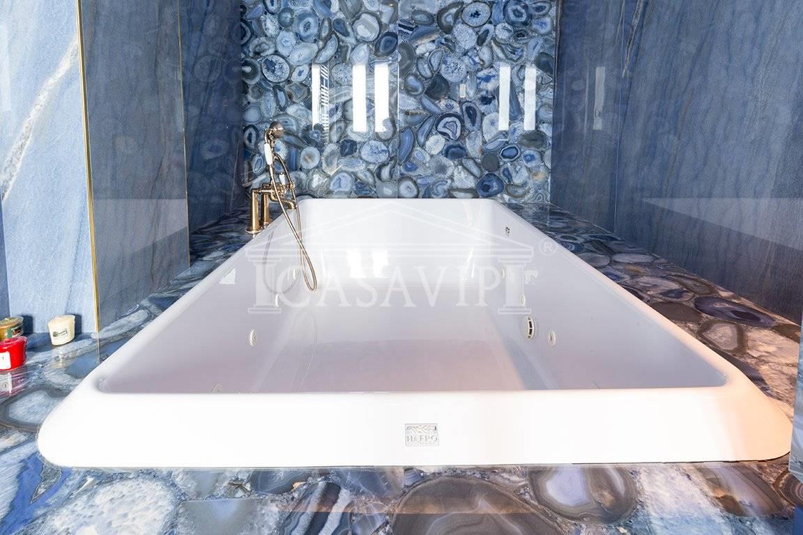 Eccezionale come detto la ristrutturazione, terminata due anni fa, eseguita con l’impiego di materiali e finiture di eccezionale livello, quali: pavimenti in parquet, infissi in vetrocamera di ultima generazione, aria condizionata canalizzata con pannelli di controllo a parete, bagno padronale in pregiatissimo gres porcellanato effetto marmo, vasca doppia idromassaggio, libreria salone ed armadi su misura in corridoio e camera padronale realizzati da falegname altamente specializzato, faretti illuminazione “viabizzuno”, cucina arredata di importante marchio corredata di doppio forno e cantinetta frigo, impianto di riproduzione visiva e sonora in salone con proiettore di altissima qualità e cablaggio cavi ad alta definizione che corre sotto le cornici del salone, impianto antintrusione, solo per citare alcune delle dotazioni.