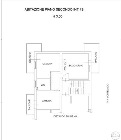 - Composizione: salone con angolo cottura, disimpegno, cameretta, bagno finestrato, camera matrimoniale con balcone
