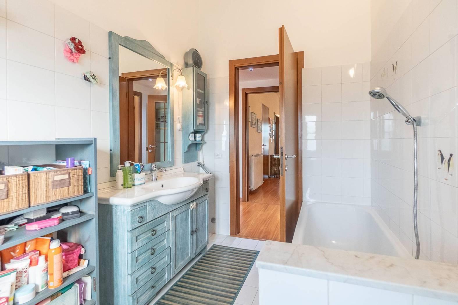- Due bagni, entrambi con finestra (uno con vasca, uno con box doccia)