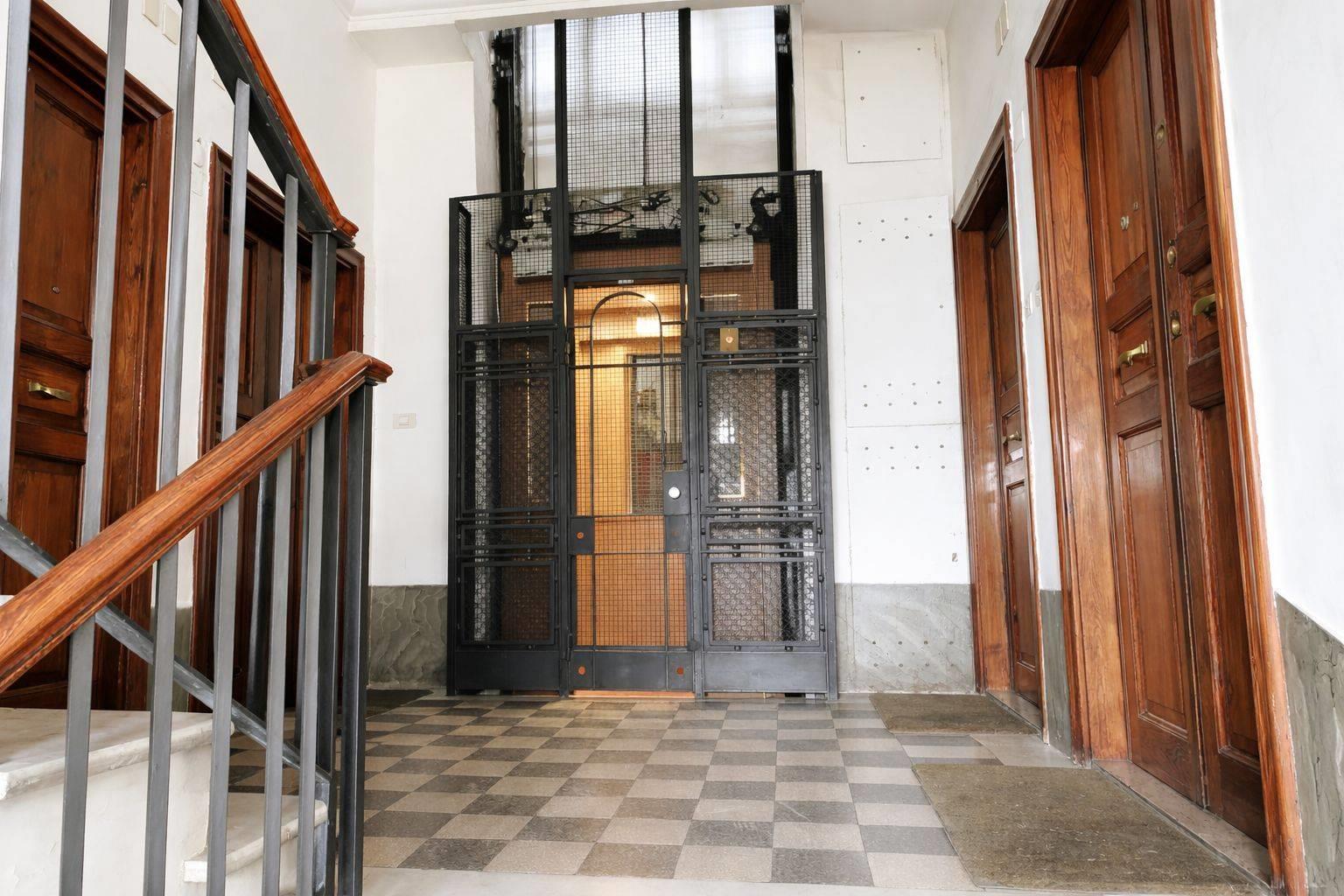 mq situato al sesto piano di un elegante stabile d’epoca con ascensore e portiere.