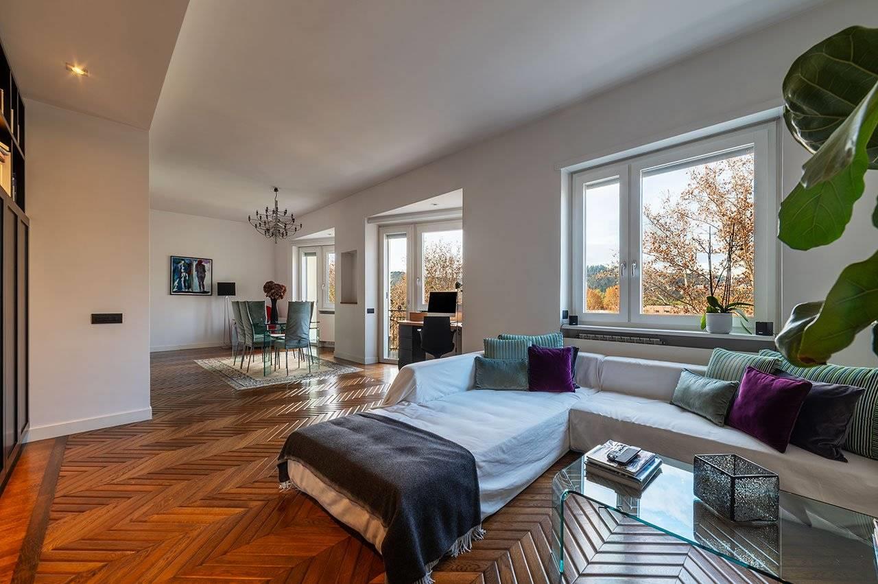 Aria condizionata, riscaldamento centralizzato con contabilizzatori di calore, parquet in tutti gli ambienti, infissi PVC con doppi vetri.