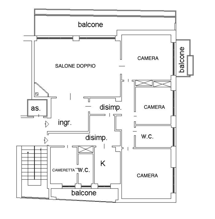 La disposizione interna prevede tre camere matrimoniali silenziose oltre ad una cameretta ; doppi servizi funzionali; cucina abitabile con accesso diretto ad uno dei tre balconi presenti nell’abitazione.