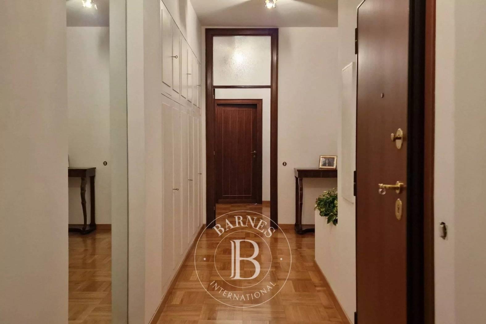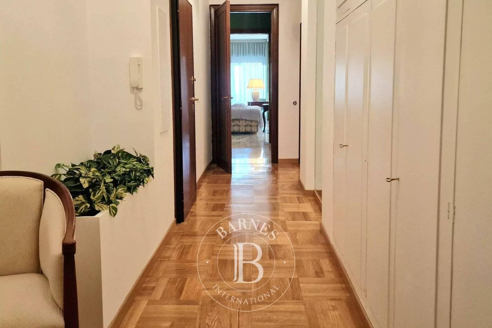 L'appartamento è dotato di doppio ingresso, varcando la porta si viene accolti da un elegante disimpegno che introduce con naturalezza alla zona di rappresentanza: il salone doppio con camino, ampio e luminoso, si apre come cuore della casa, uno spazio pensato per ricevere, vivere e condividere.
