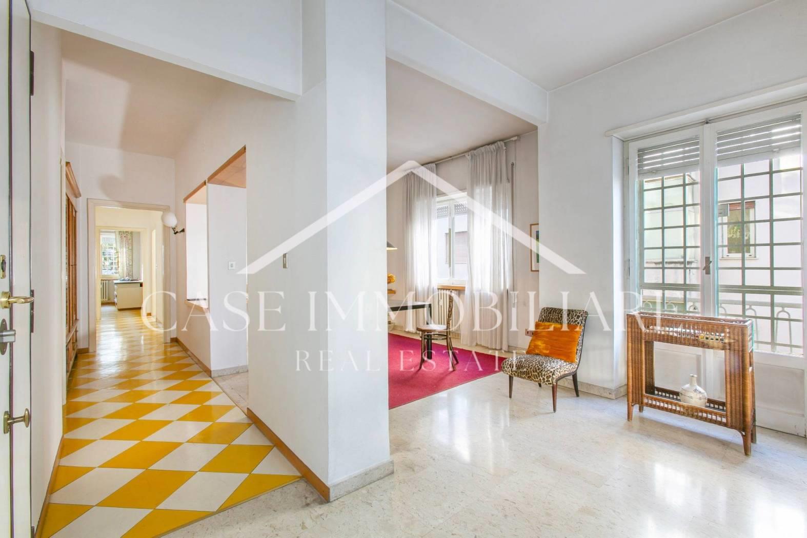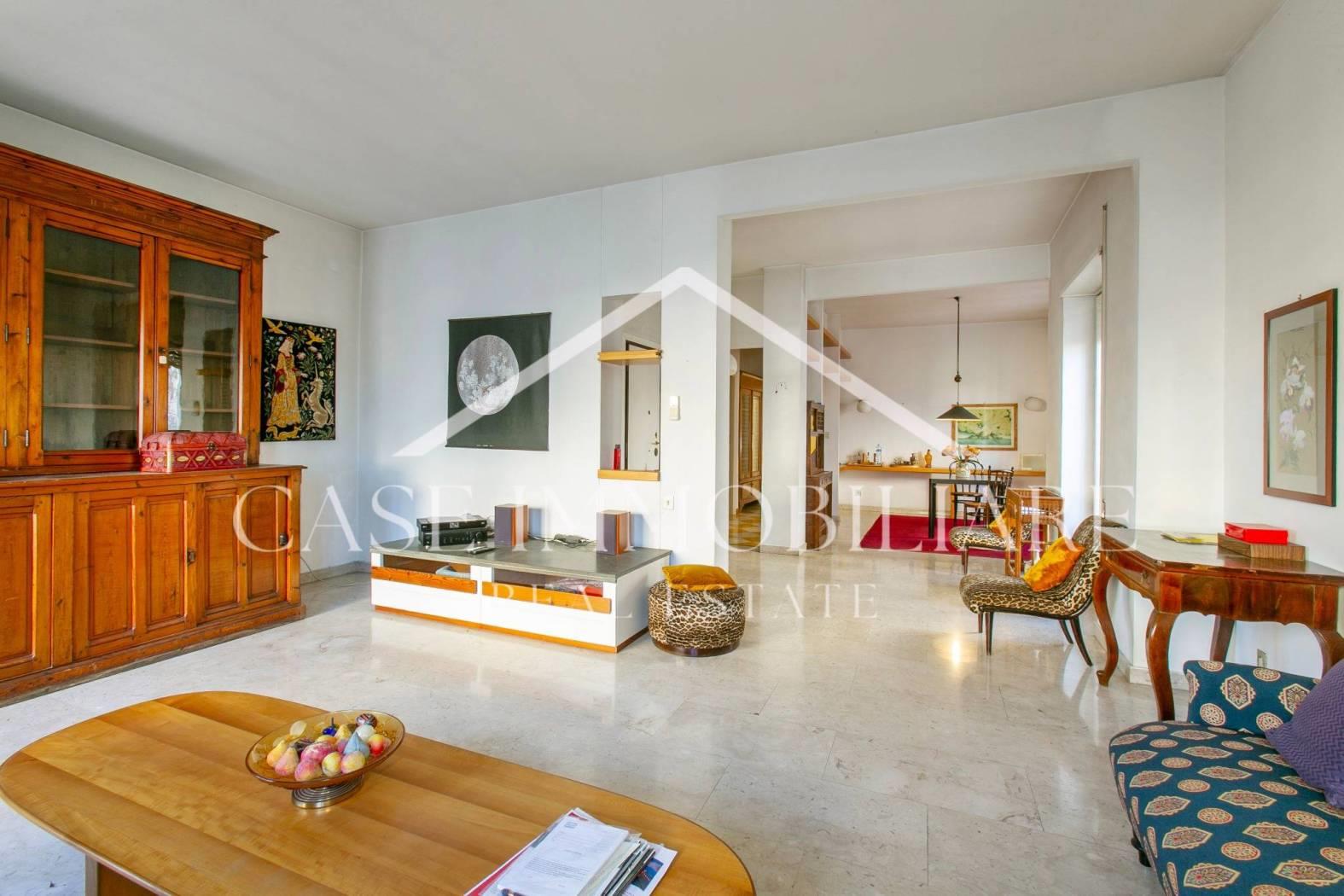 Il piacevole quadrilocale è posto al 2°piano di una palazzina di cinque, ed è così composto: entrando nell’appartamento troviamo immediatamente la zona giorno di alta rappresentanza che gode di eccezionale luminosità con doppio affaccio e uscita su un piacevole balcone, una cucina abitabile e una camera di servizio con bagno privato.