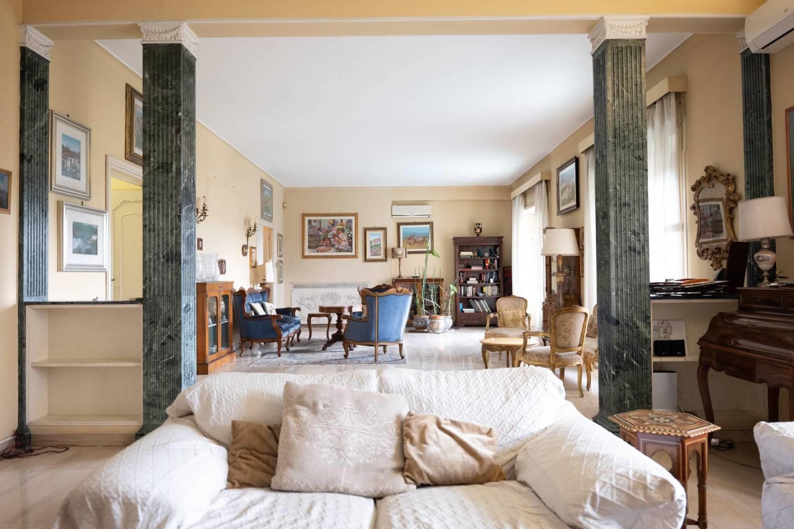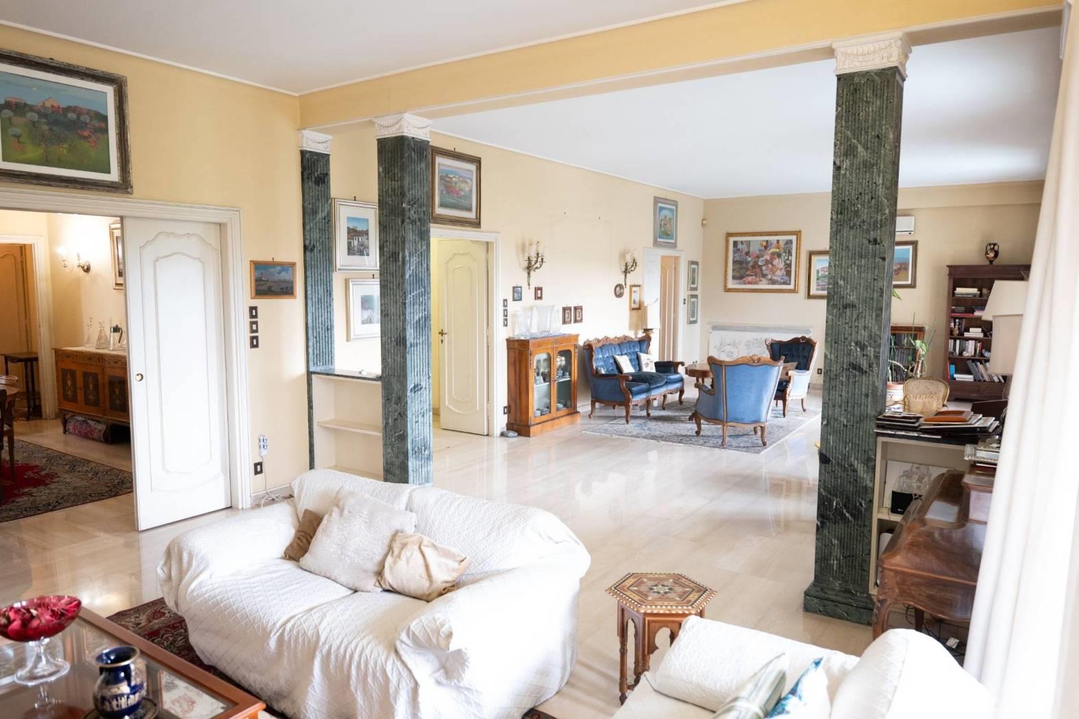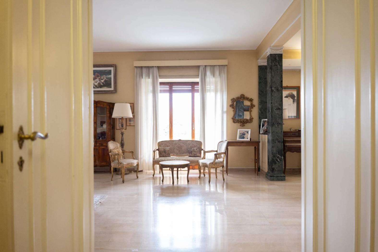 L’ingresso, ampio e accogliente, introduce alla rappresentanza composta da un salone triplo di grande respiro e da un soggiorno adibito a zona pranzo. L’intera zona giorno si apre sul terrazzo principale, perfettamente esposto e molto luminoso, ideale per accogliere ospiti e vivere momenti conviviali con una cornice suggestiva sulla città.