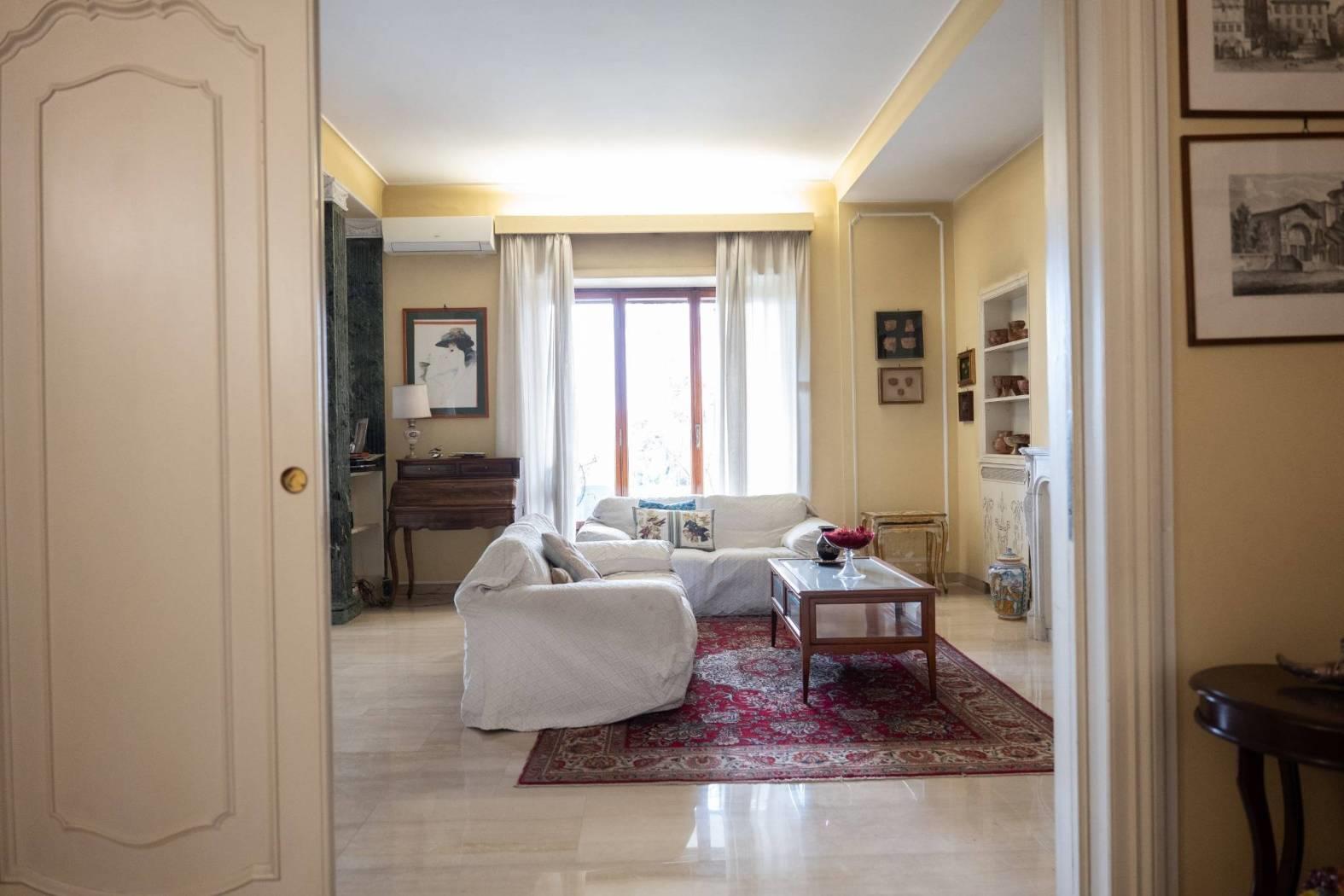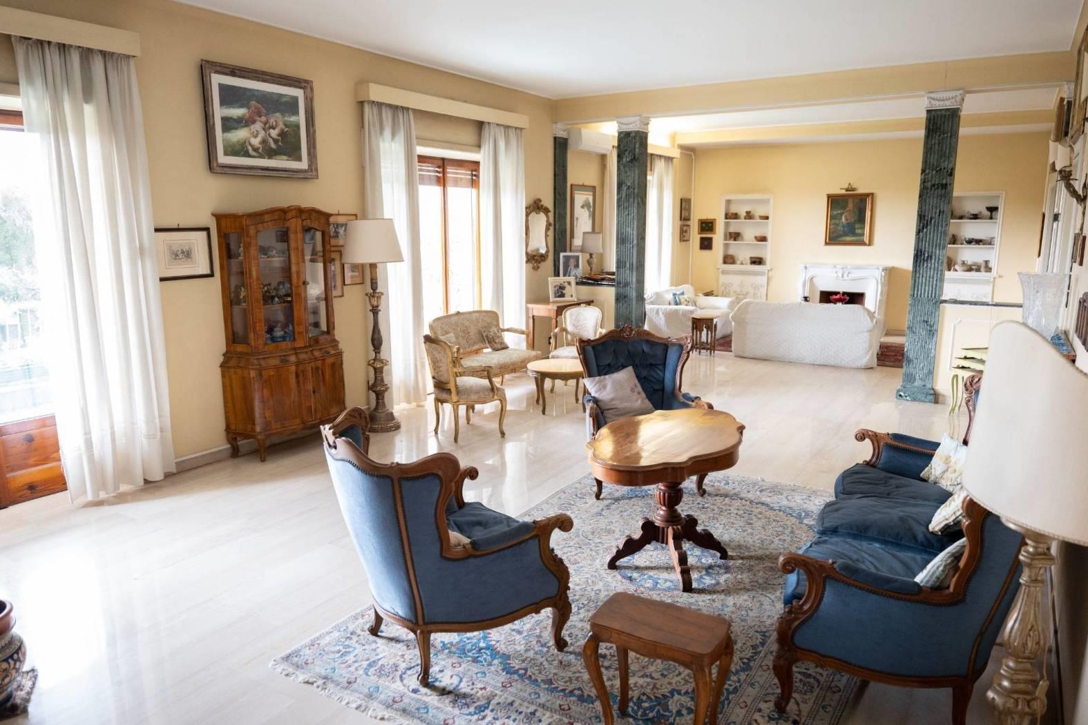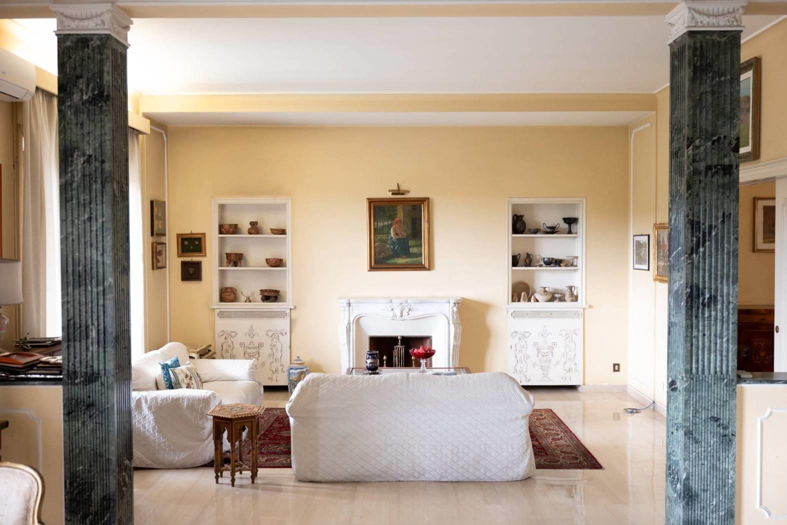 L’ingresso, ampio e accogliente, introduce alla rappresentanza composta da un salone triplo di grande respiro e da un soggiorno adibito a zona pranzo. L’intera zona giorno si apre sul terrazzo principale, perfettamente esposto e molto luminoso, ideale per accogliere ospiti e vivere momenti conviviali con una cornice suggestiva sulla città.