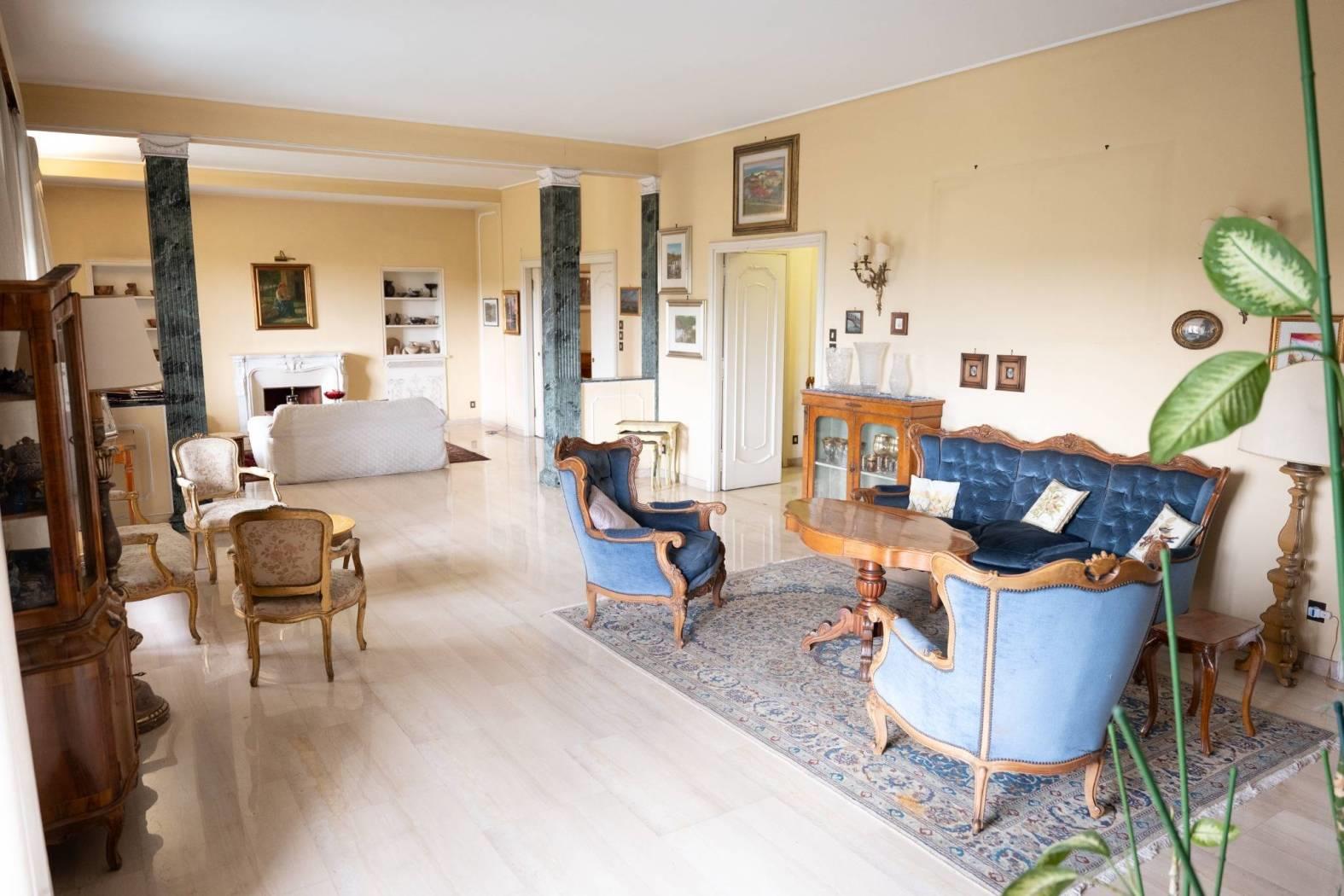 In un’elegante palazzina signorile, dotata di servizio di portineria e doppio ascensore (padronale e di servizio), proponiamo in vendita un prestigioso appartamento di circa 300 MQ situato al secondo piano. La proprietà è arricchita da ampi spazi esterni: un terrazzo principale di circa 35 MQ con splendida vista panoramica a 180° sulla città, un secondo terrazzo di circa 15 MQ ed un ulteriore balcone.