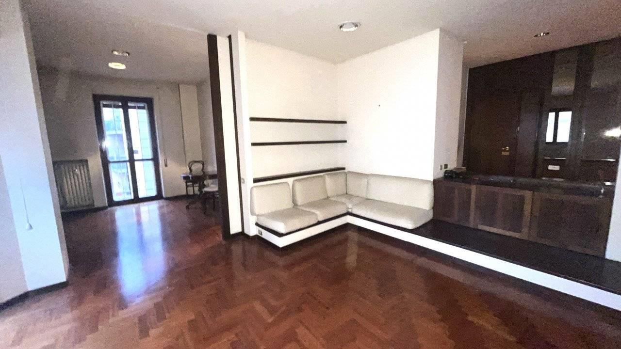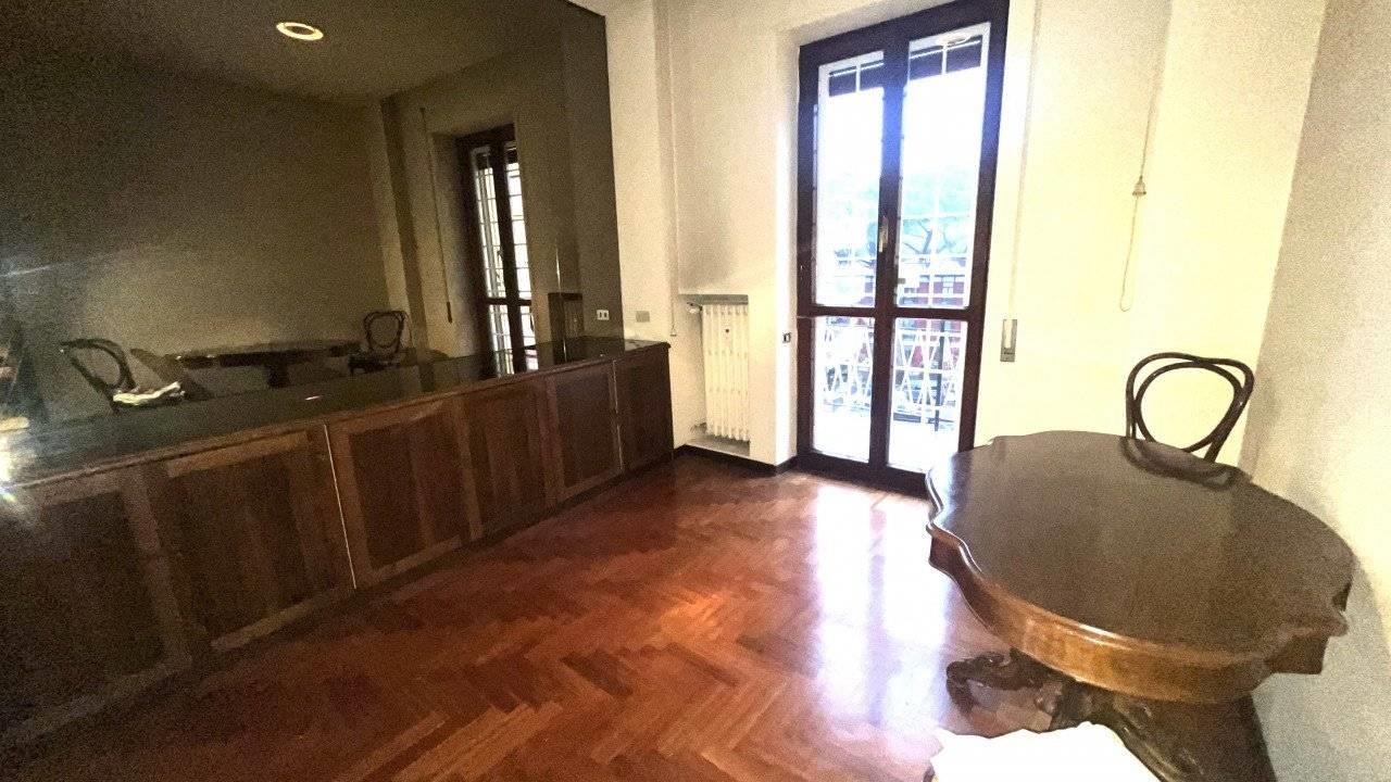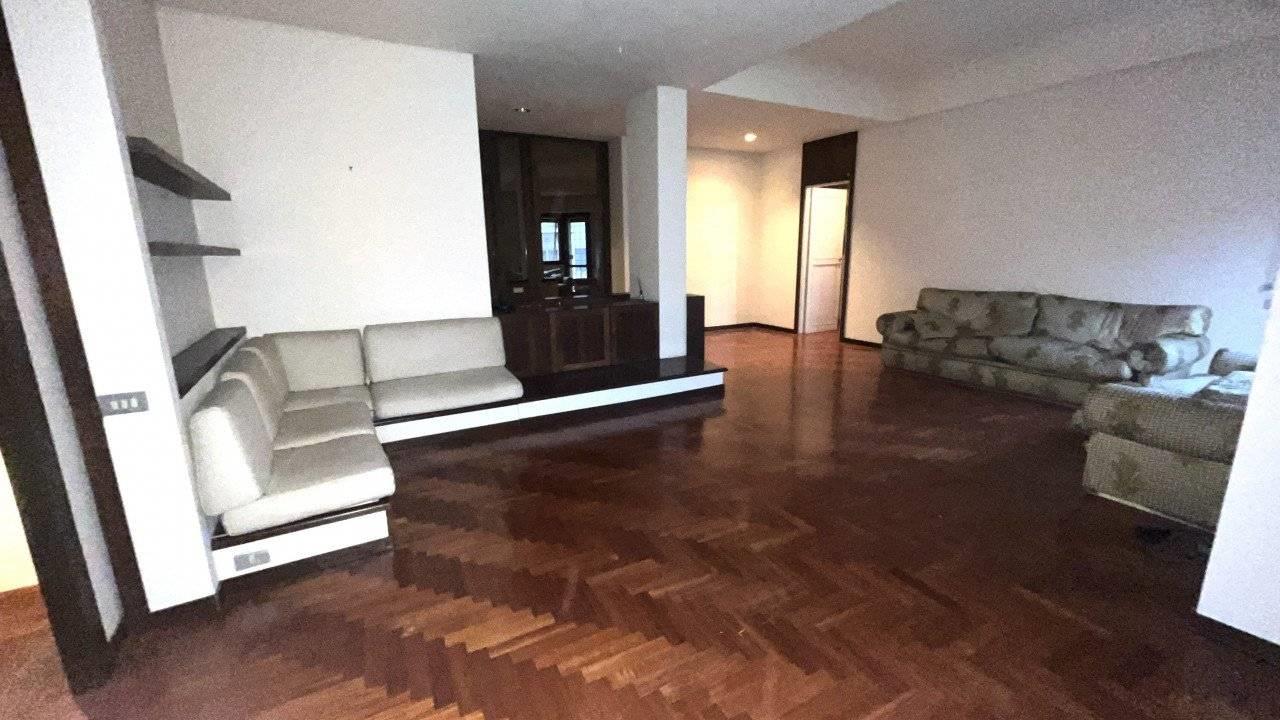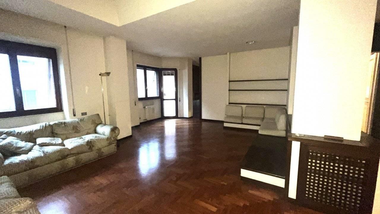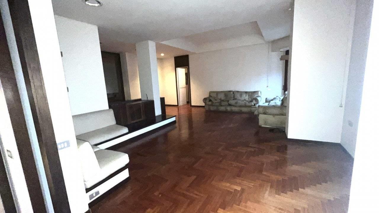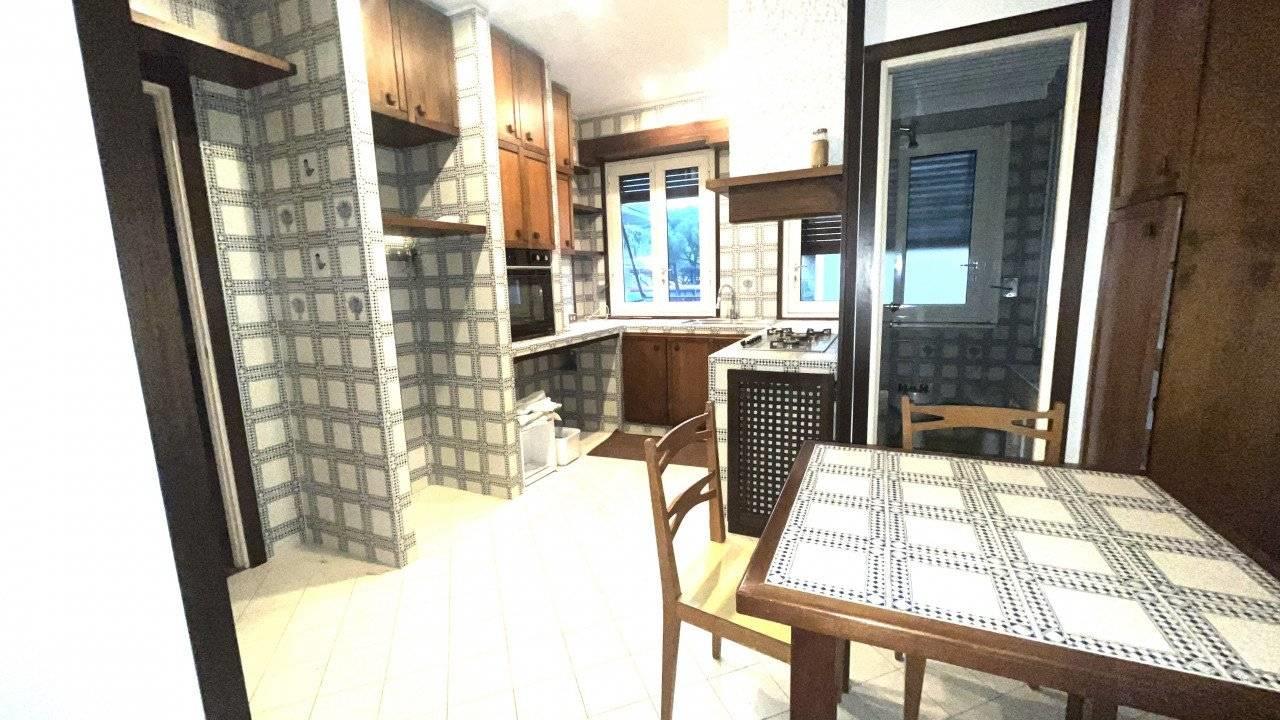 E' composto da un doppio ingresso, salone doppio , camera da pranzo separabile dal salone con una grande porta scorrevole, cucina abitabile accanto alla sala da pranzo, tre camere, doppi servizi finestrati.
