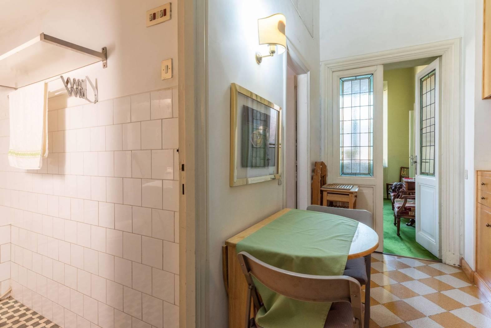 La casa ha un grande fascino e il sapore delle case di una volta, con ambienti di belle proporzioni, soffitti alti, finestre ampie che donano una bellissima luce; inoltre le porte e le finestre sono tutte originali e conservano rari vetri piombati dai colori delicati. Da notare che sotto la moquette sono presenti le vecchie cementine veneziane a disegni liberty, che si vedono ancora nello studio. La distribuzione interna degli ambienti poi è particolarmente fortunata in quanto è molto razionale; ed approfittando della planimetrai ad "L", con gli impianti al centro, si può pensare, in una futura ristrutturazione, di creare una zona notte con due camere da letto ed i relativi bagni.