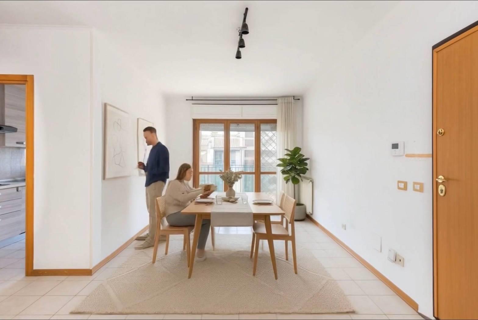 Le fotografie dell’annuncio includono sia immagini reali dell’appartamento sia render di arredo, pensati per mostrare le potenzialità degli ambienti e aiutare a immaginare una possibile distribuzione degli spazi.