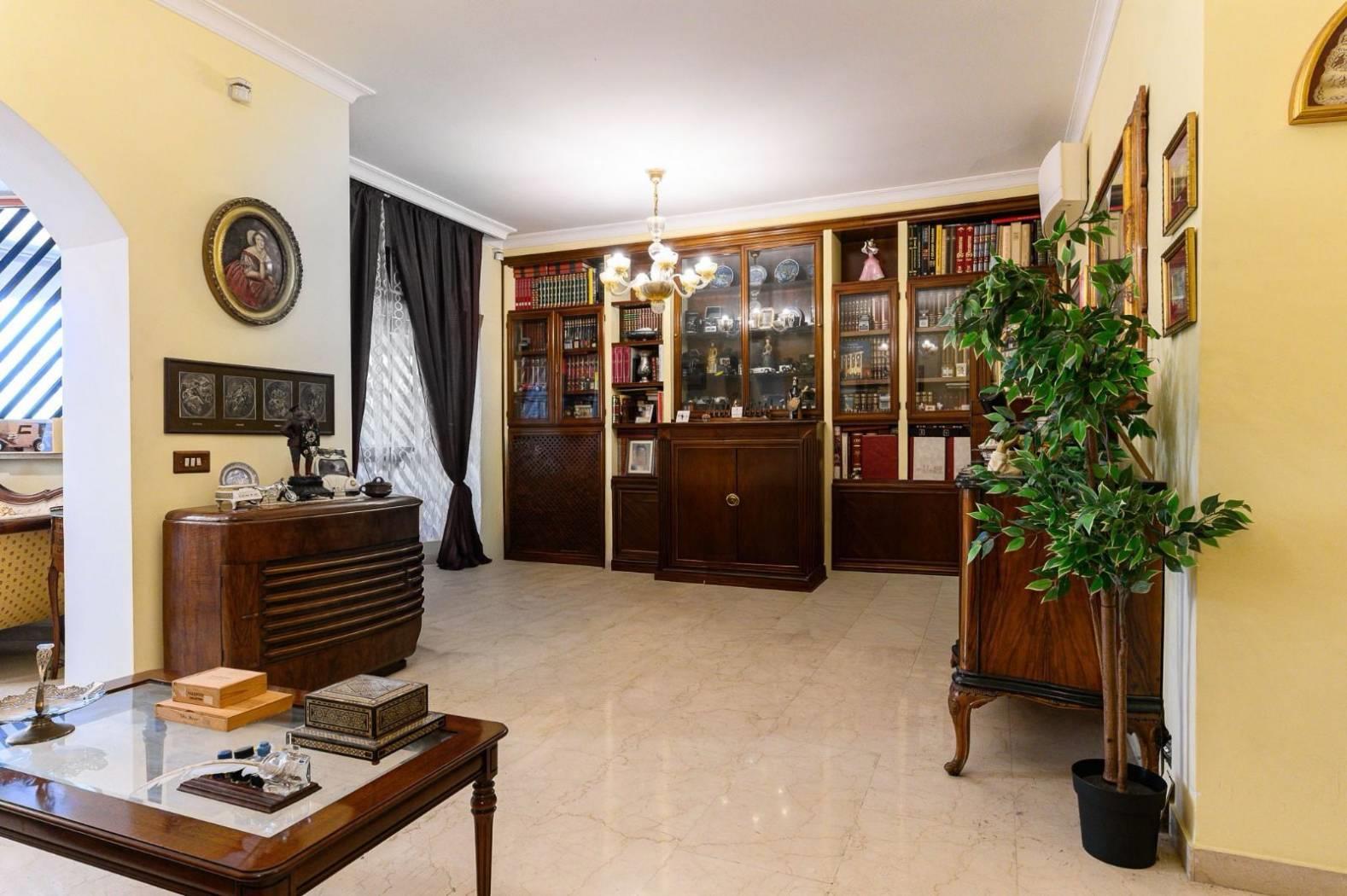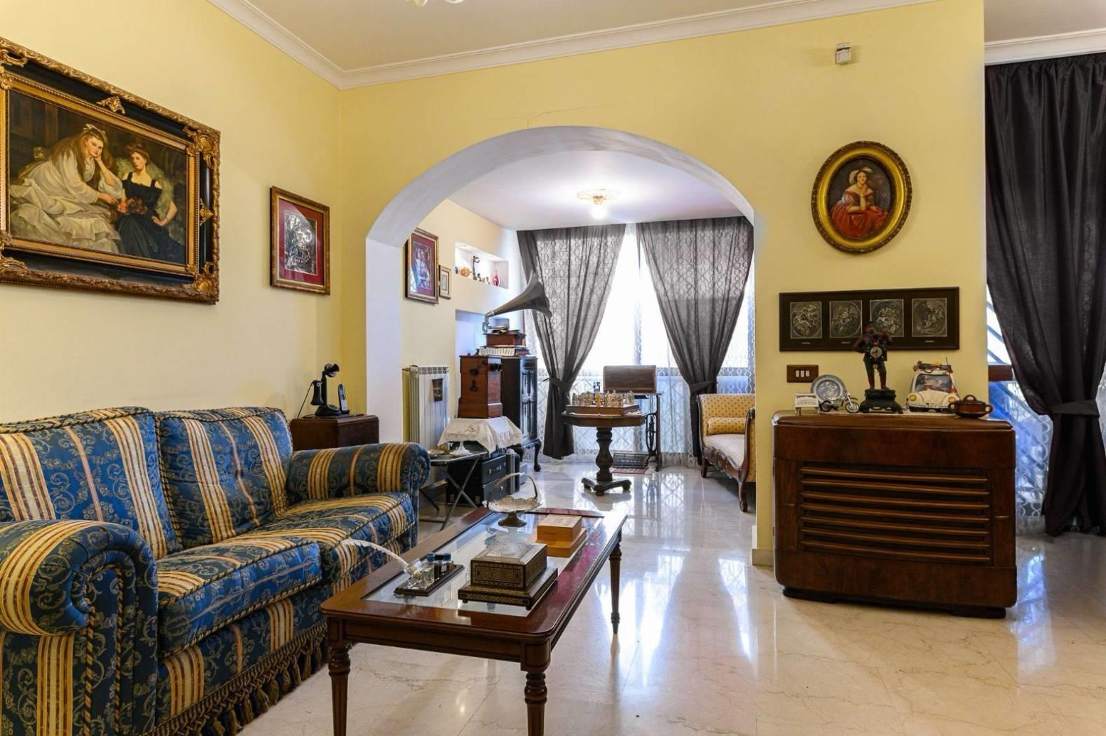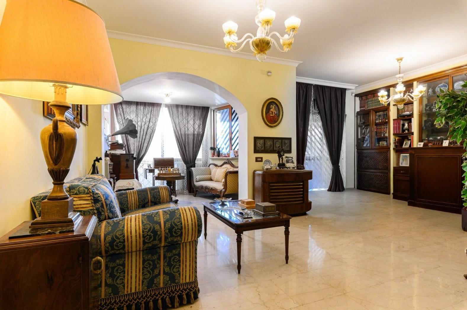 L’appartamento è composto da: salone doppio con boiserie in legno massello, cucina abitabile, due camere da letto matrimoniali, due bagni, ed un ampio terrazzo.