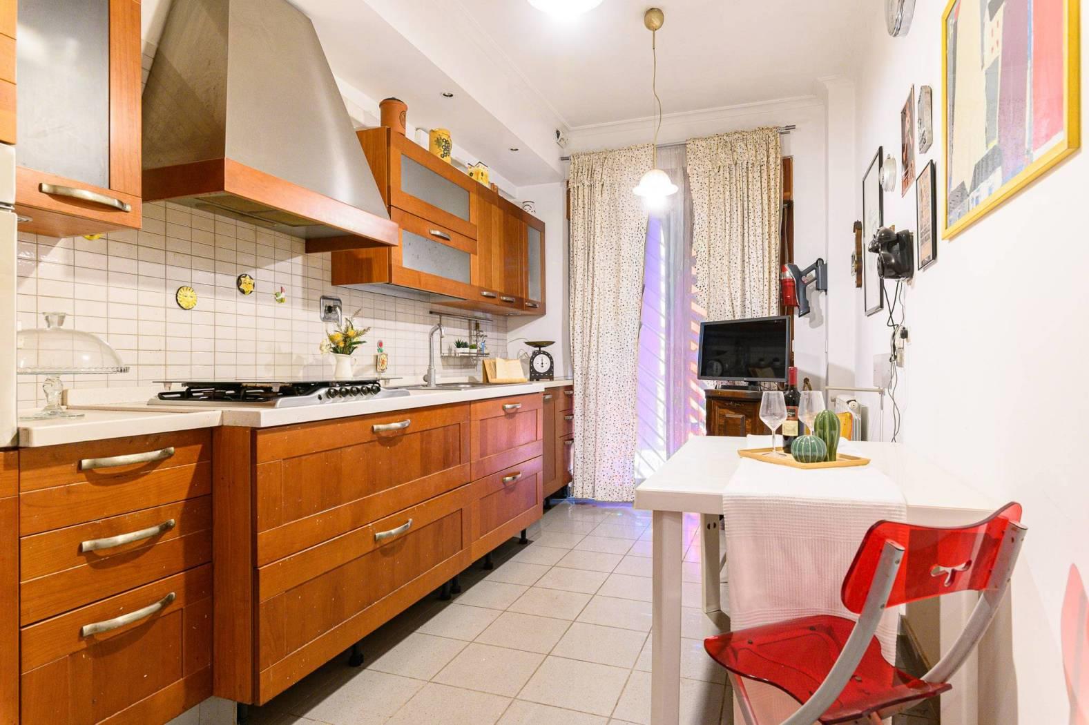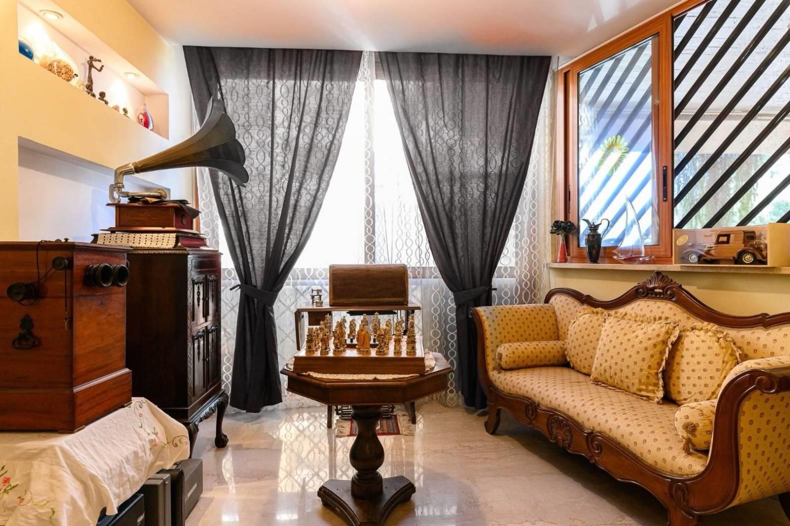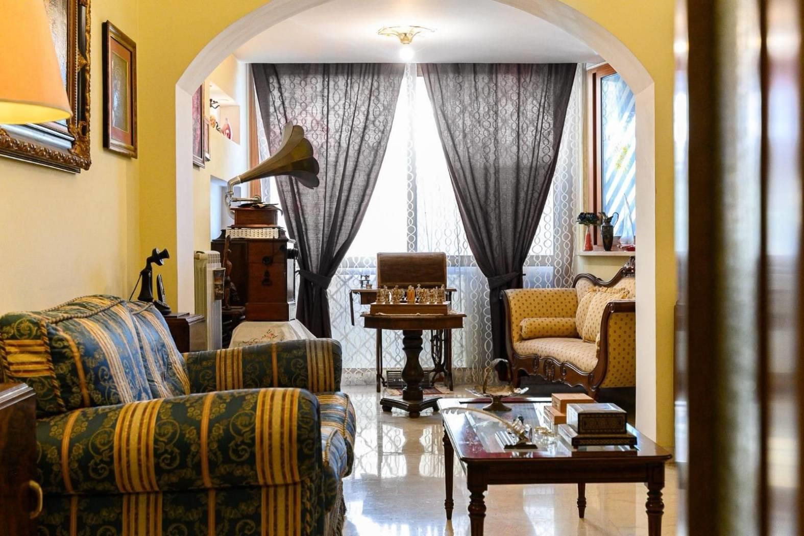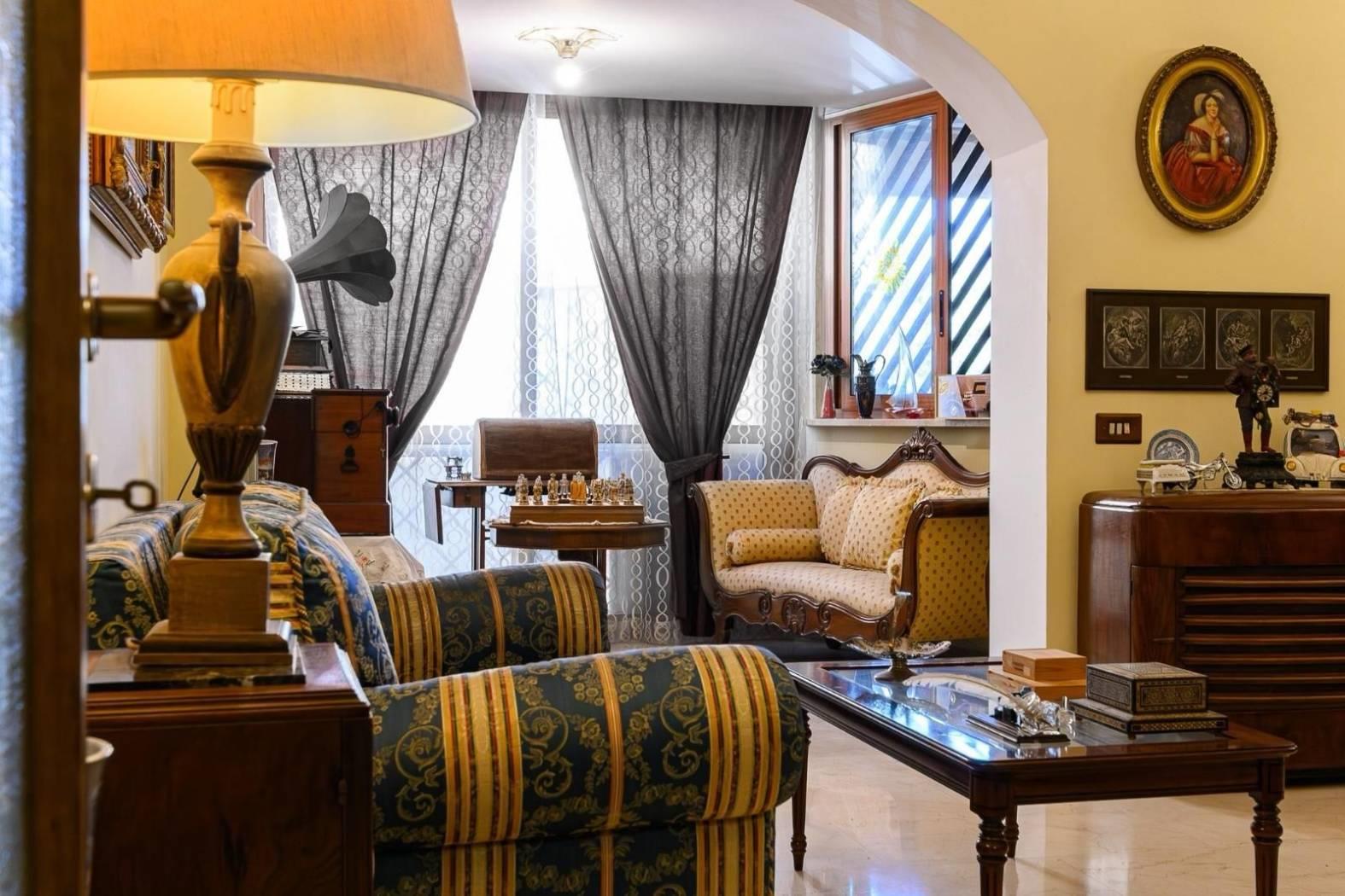 L’appartamento è composto da: salone doppio con boiserie in legno massello, cucina abitabile, due camere da letto matrimoniali, due bagni, ed un ampio terrazzo.