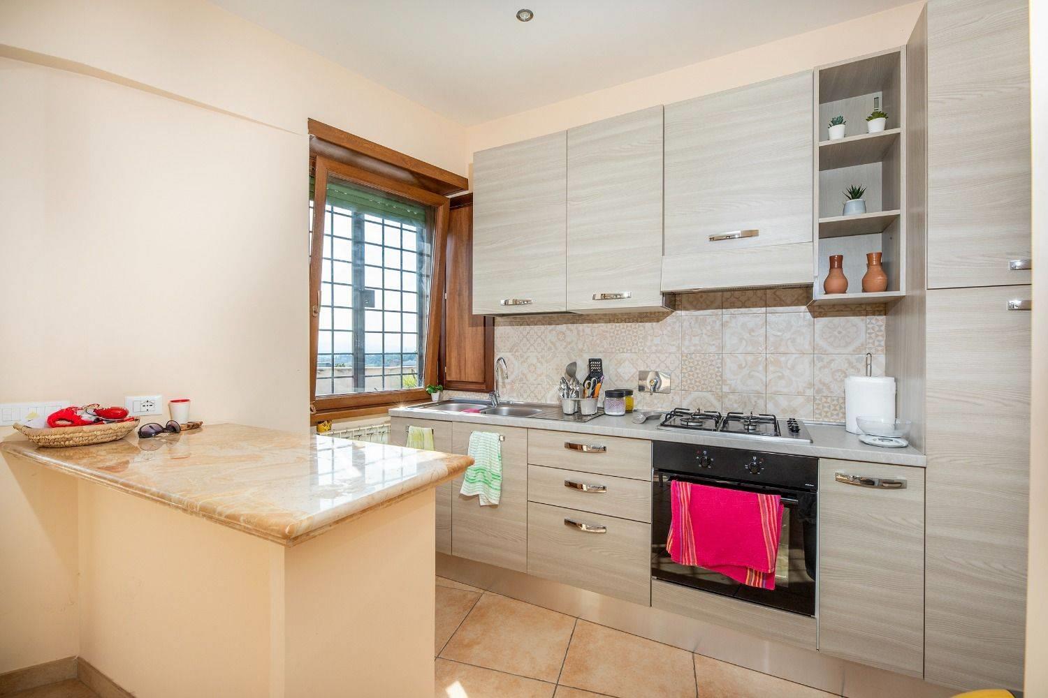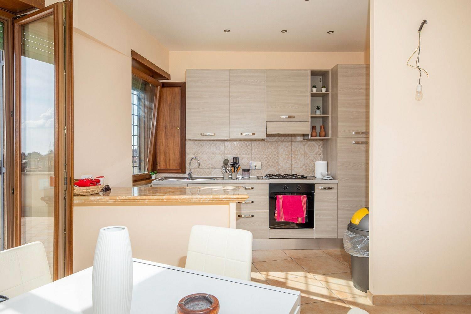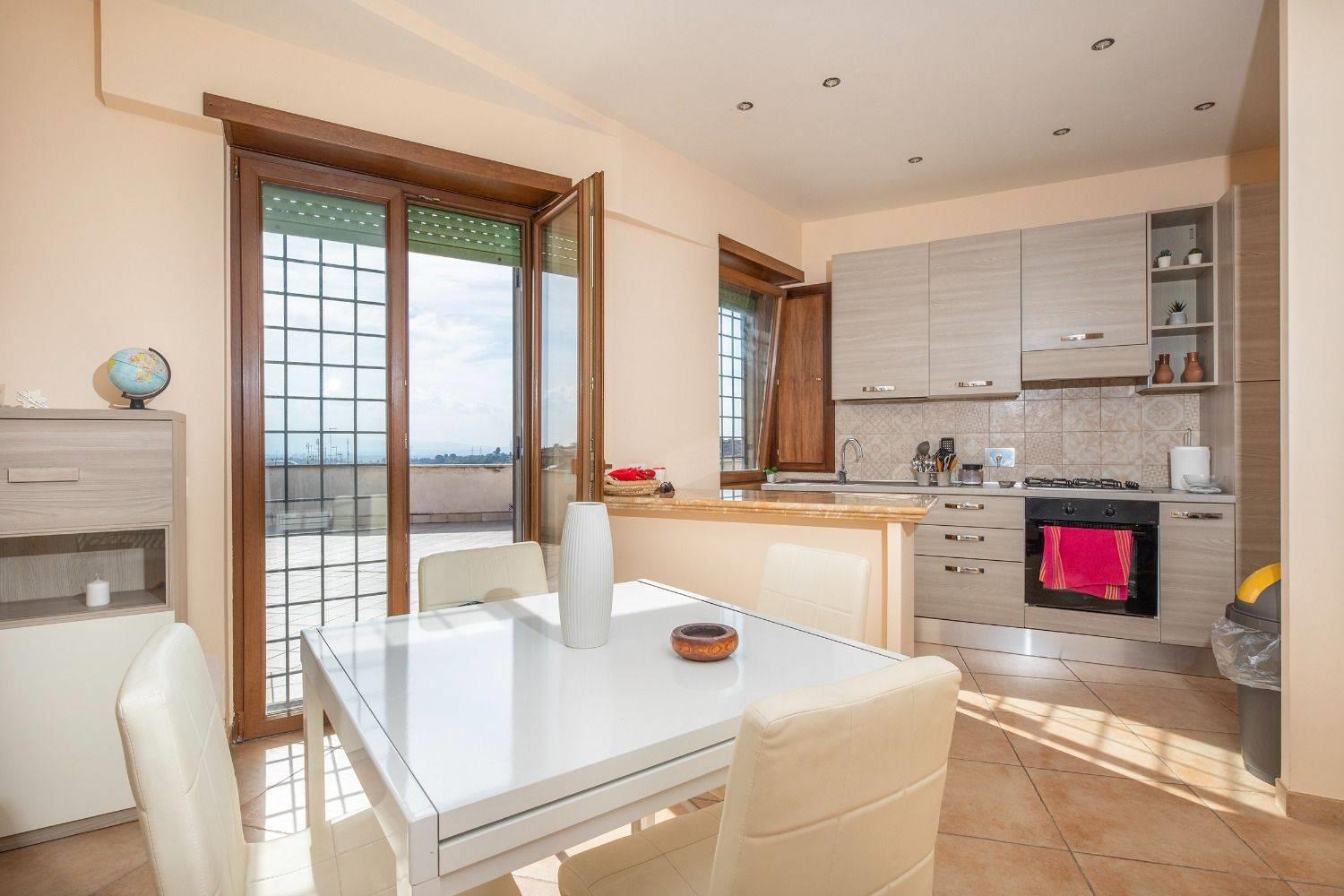 L'immobile è composto da soggiorno con angolo cottura, disimpegno, camera matrimoniale, cameretta, bagno, ripostiglio e un ampio terrazzo panoramico di 85 mq ideale per momenti di relax e cene all'aperto.