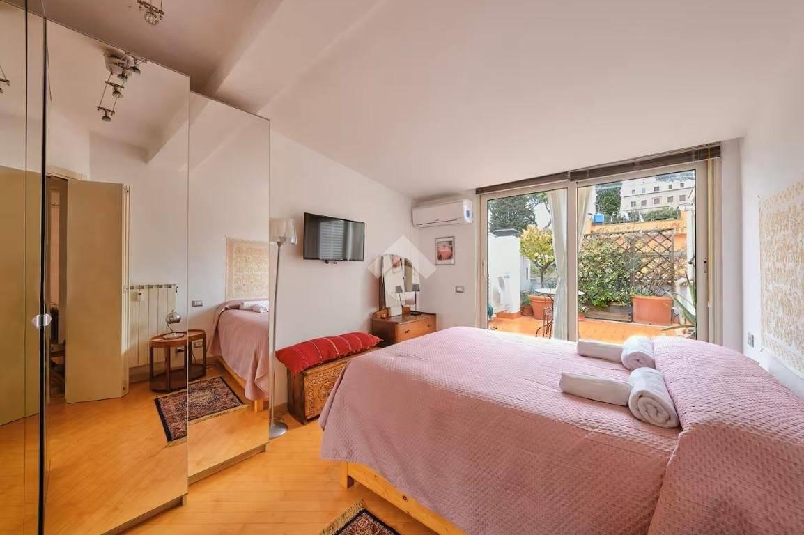 - Per il terrazzo, ampio e vivibile, con affacci aperti su San Pietro, sul Gianicolo e sulle Mura Aureliane: uno spazio esterno raro in zona, ideale per cene all’aperto, momenti di relax e per godere ogni giorno di un panorama d’eccezione;