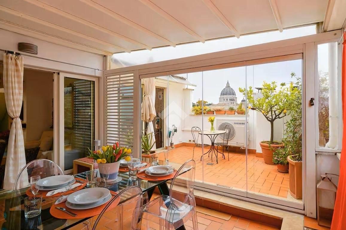 FORNACI - In una traversa di Via delle Fornaci, una delle Vie più richieste e prestigiose del quartiere, precisamente in Via San Liberio, tranquilla strada privata, proponiamo in vendita la nuda proprietà di un esclusivo attico dotato di ampio terrazzo panoramico e vista unica su San Pietro.