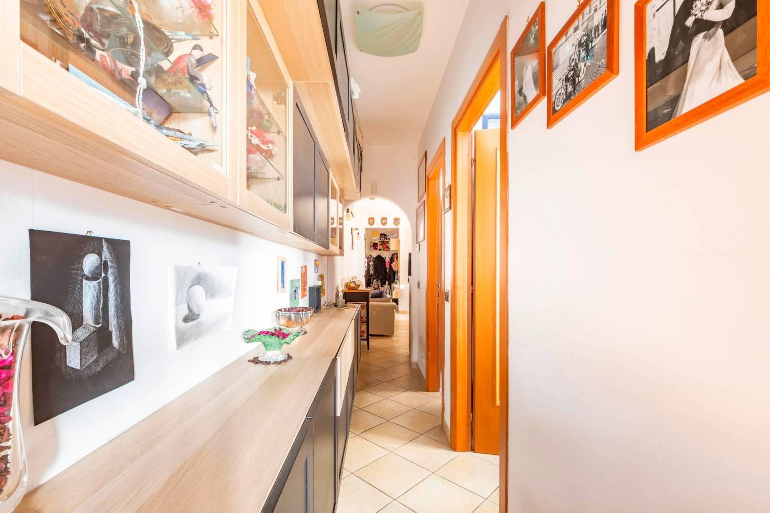 Tra le varie rifiniture portoncino blindato, infissi in legno doppio vetro, persiane in ferro su tutte le finestre, condizionatori in tutti gli ambienti di casa, impianto d'allarme e tende da sole.