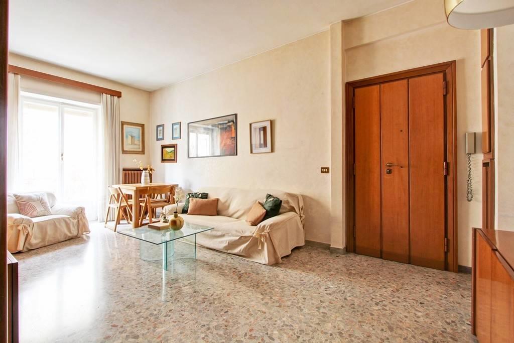 Torrevecchia, in prossimità del Policlinico Gemelli, e precisamente in Via Mosca, in una strada tranquilla con la fermata dell'autobus nelle immediate adiacenze, luminoso appartamento di 93 mq circa posto al secondo piano all’interno di una palazzina in cortina con ascensore. L’immobile si compone di ingresso, soggiorno pranzo arricchito da una grande libreria e affaccio su un balcone, corridoio controsoffittato e rivestito da una elegante boiserie, cucina abitabile attrezzata con forno, frigorifero, congelatore e annesso comodo tinello rifinito da un elegante portale in legno, camera matrimoniale con una intera parete di armadi a muro, camera singola con piccola cabina armadio, ripostiglio e ampio bagno finestrato con doccia recentemente ristrutturato. Sia dalla cucina che dalle camere si accede ad una seconda ampia balconata di circa 10 mq.