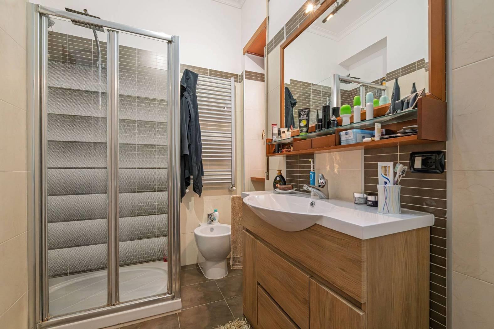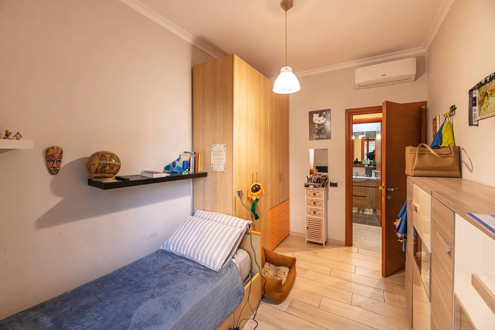 Giustiniana Via Giulio Galli proponiamo la vendita di un appartamento completamente ristrutturato. Si accede all'immobile da un ingresso indipendente al piano terra dove troviamo un ampio ripostiglio sottoscala; l'appartamento poi si sviluppa interamente al primo piano e si compone di un salone con cucina a vista, tre camere da letto, due bagni e un terrazzo con zona lavanderia. Completa la proprietà un box auto doppio di circa 28 mq eventualmente soppalcabile. L'immobile è inoltre dotato di infissi in legno con doppi vetri, porta blindata, grate di sicurezza e aria condizionata.