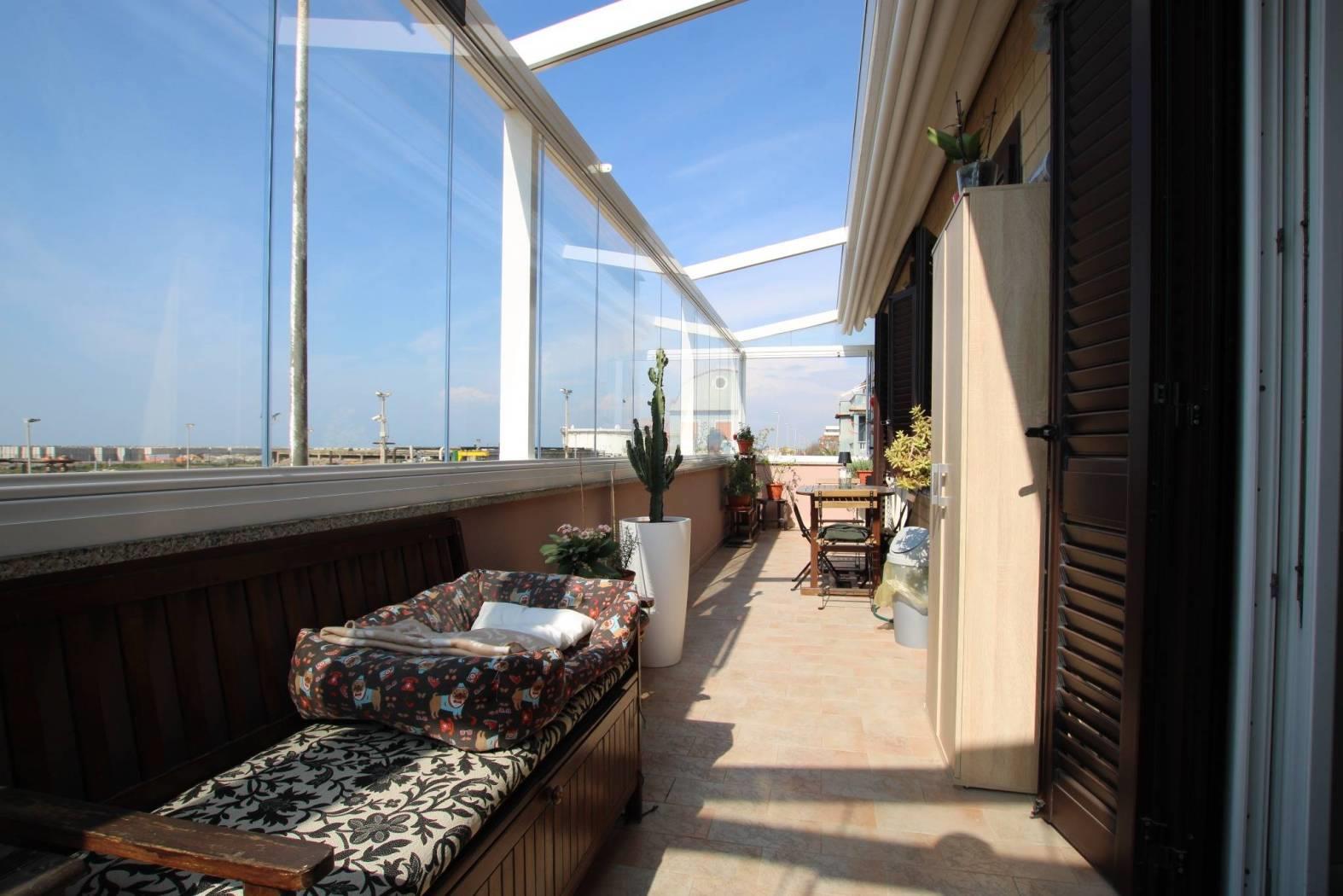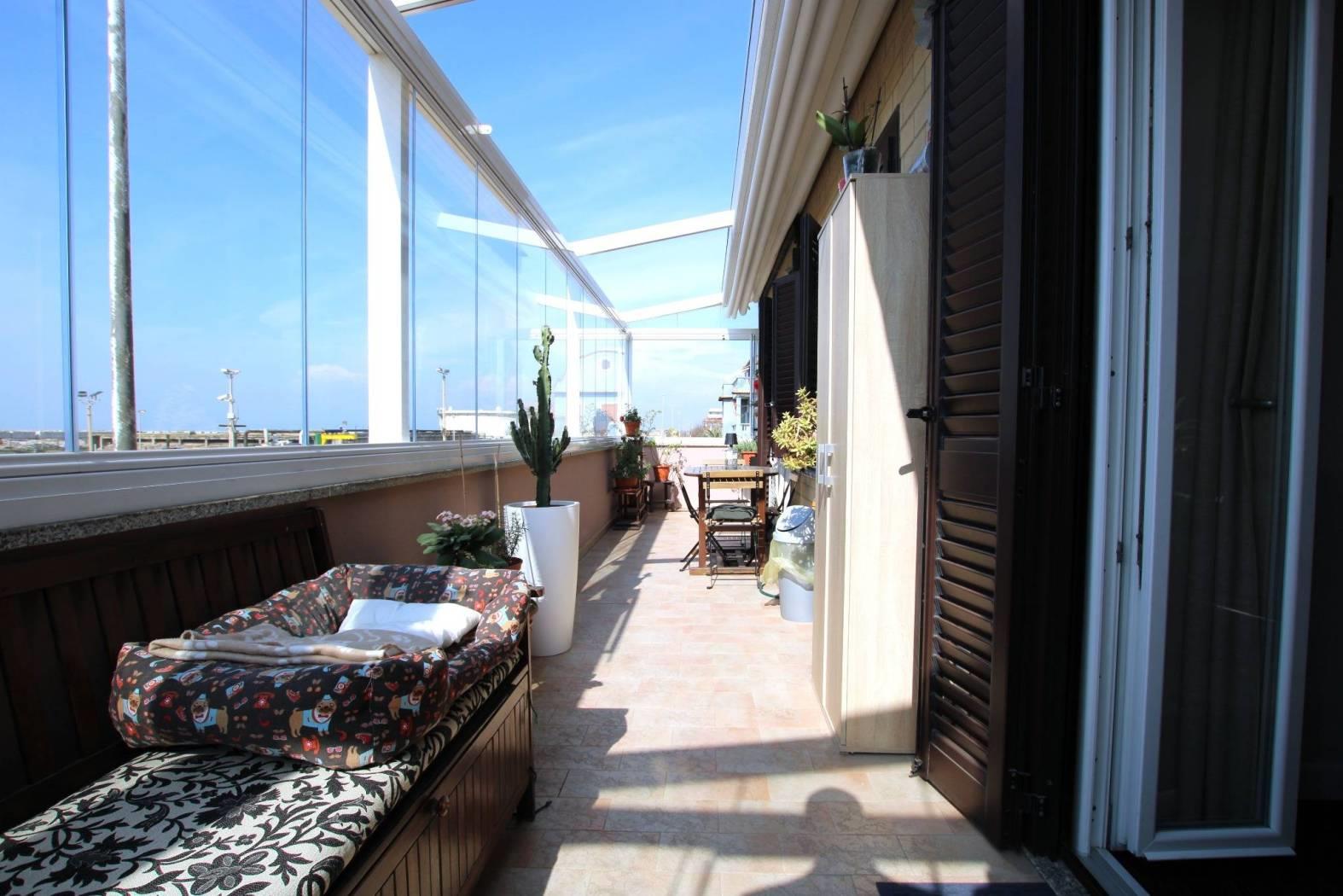 Completa il tutto uno splendido terrazzo che grazie alla pergotenda e alle vetrate a libretto lo rendono sfruttabile 12 mesi l'anno, gustandosi un buon aperitivo vista mare.
