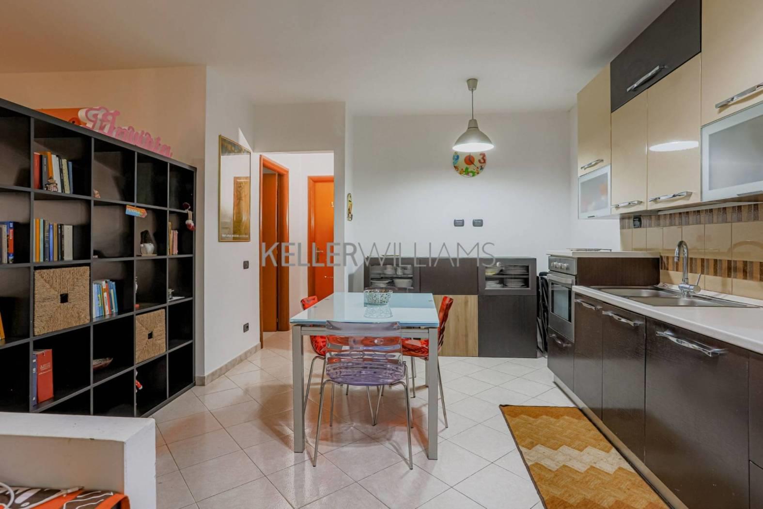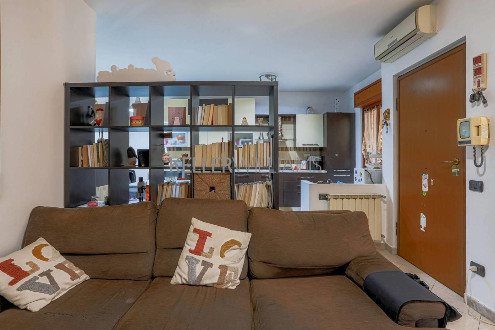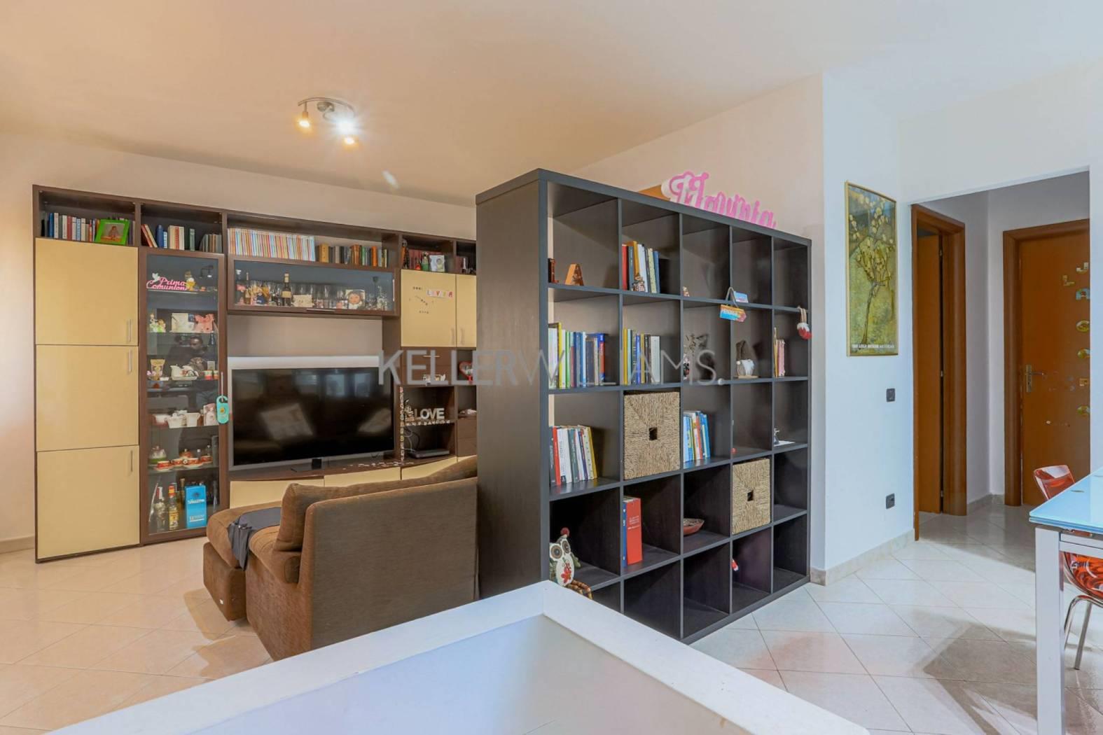 L'ingresso si apre su un luminoso soggiorno con cucina all'americana, ambiente accogliente e funzionale, perfetto per la vita quotidiana. La zona notte è composta da due camere da letto ed un bagno con doccia.