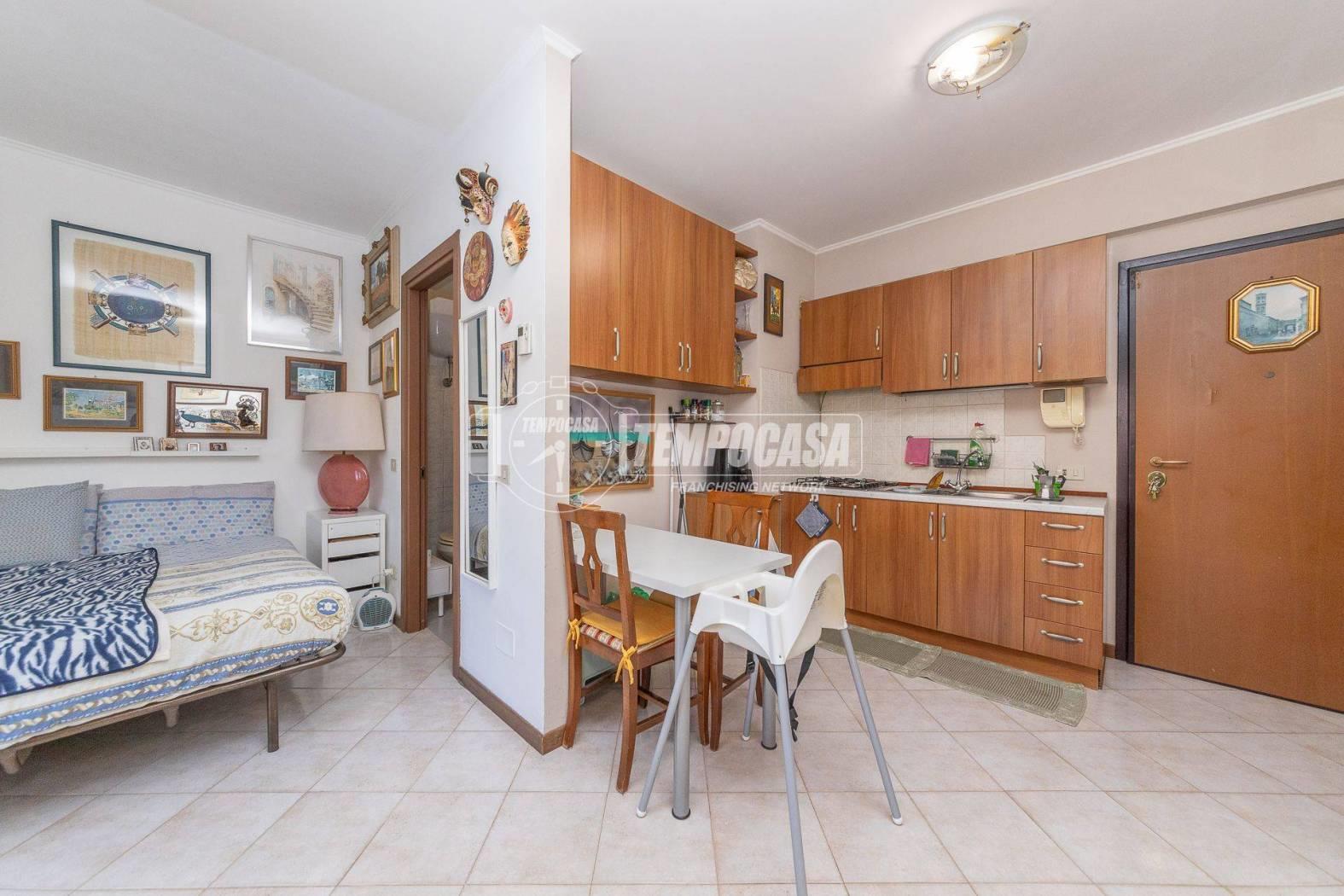 L’ingresso conduce a un’unica e accogliente zona giorno, dove troviamo una cucina a vista con tavolino, una zona notte con letto matrimoniale e uno spazio living ben organizzato con un piccolo divanetto. Il bagno è completo e funzionale. Una porta finestra permette l’accesso a un comodo balconcino con vista aperta, perfetto per godere di luce naturale e aria aperta.