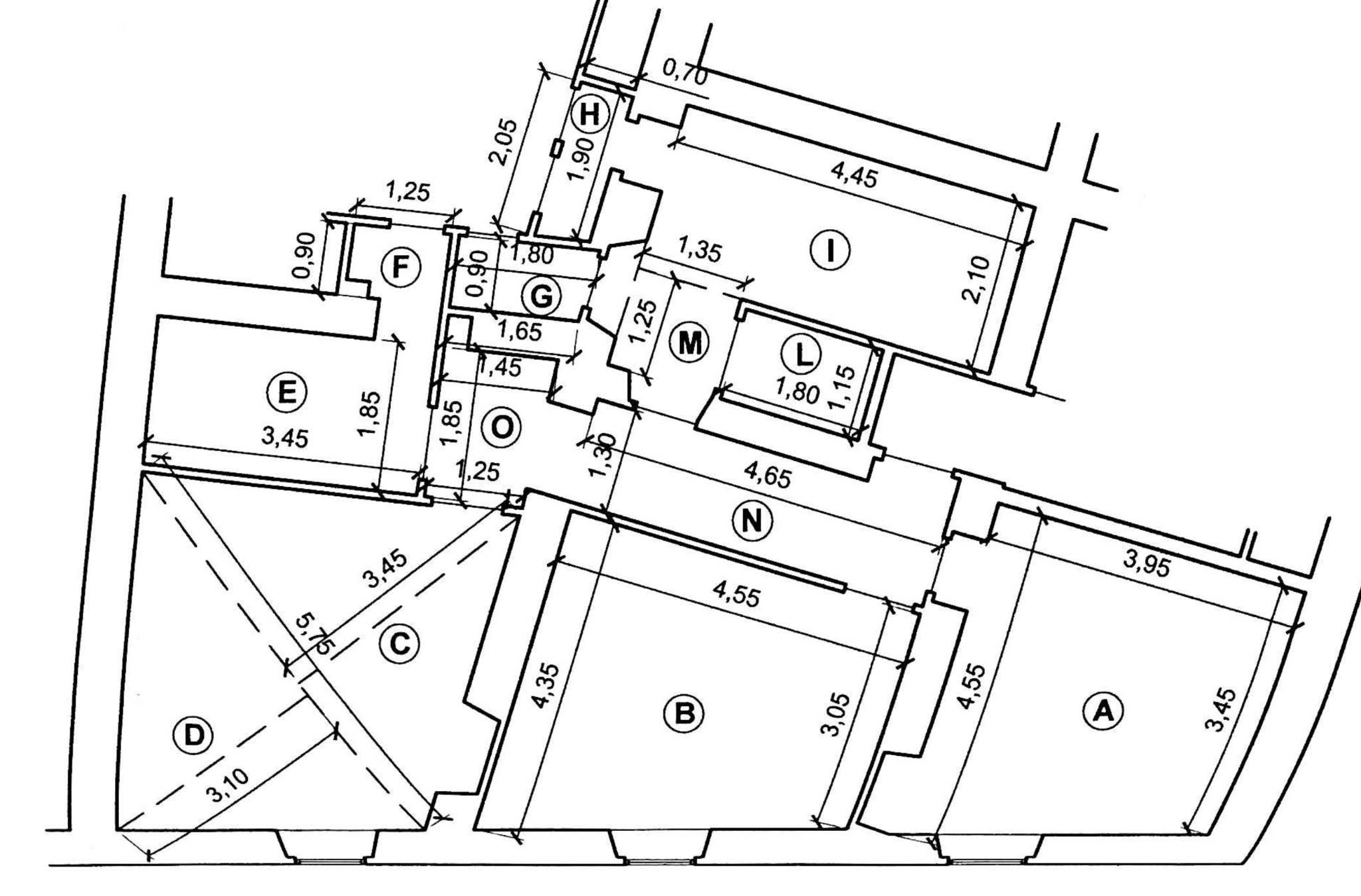Si compone di ingresso, corridoio, soggiorno, due camere, cucina, bagno (con possibilità di ricavarne un secondo), ripostiglio e piccolo balcone.