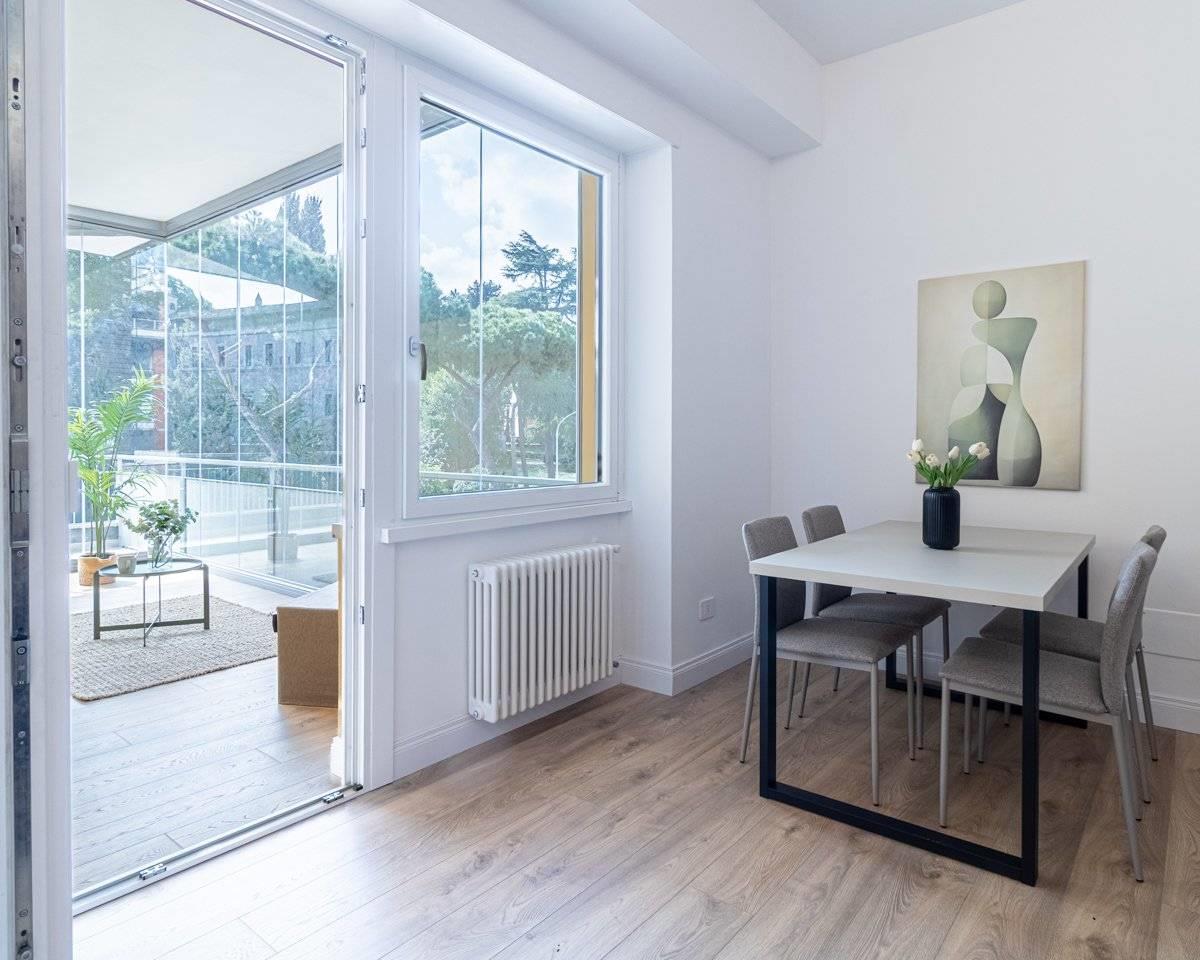L’immobile si trova in uno stabile signorile anni ’60 con servizio di portineria, a pochi minuti a piedi dalla Metro A, dall’Università Link Campus, vicino a Villa Doria Pamphili e alla zona San Pietro.