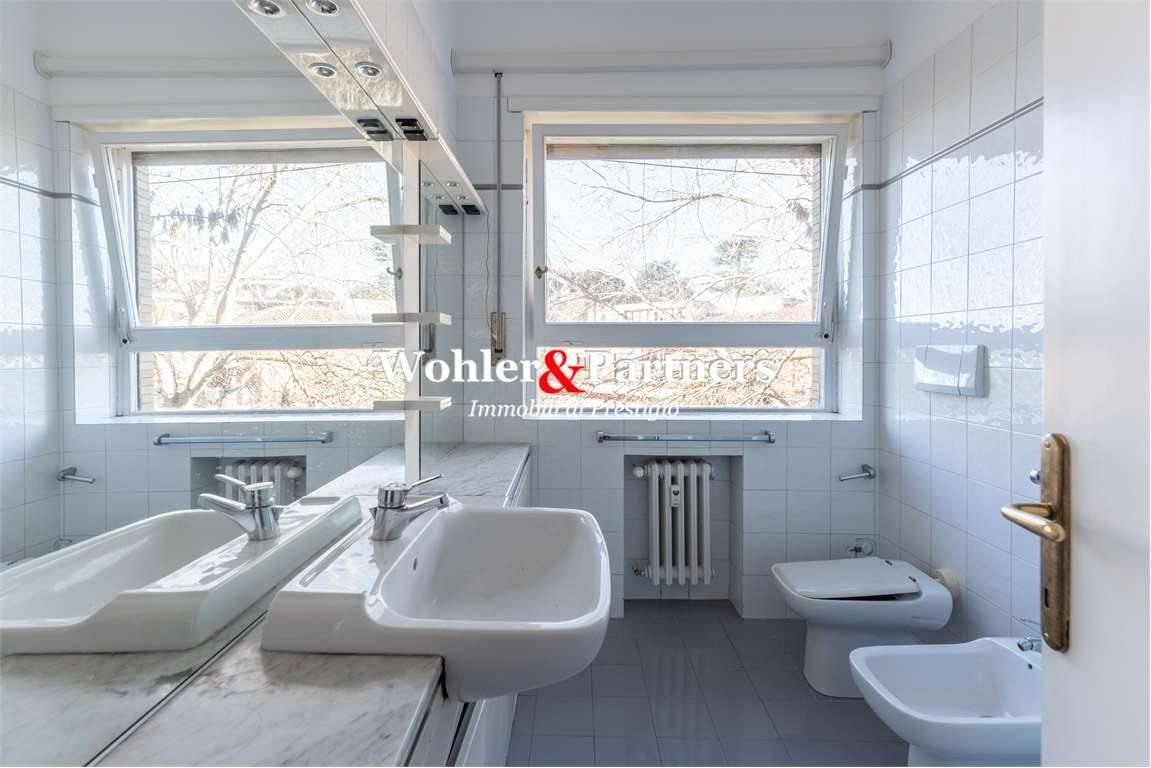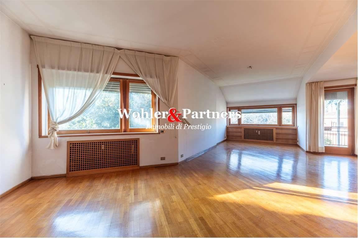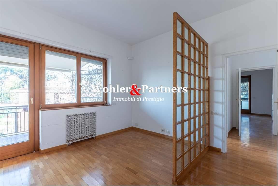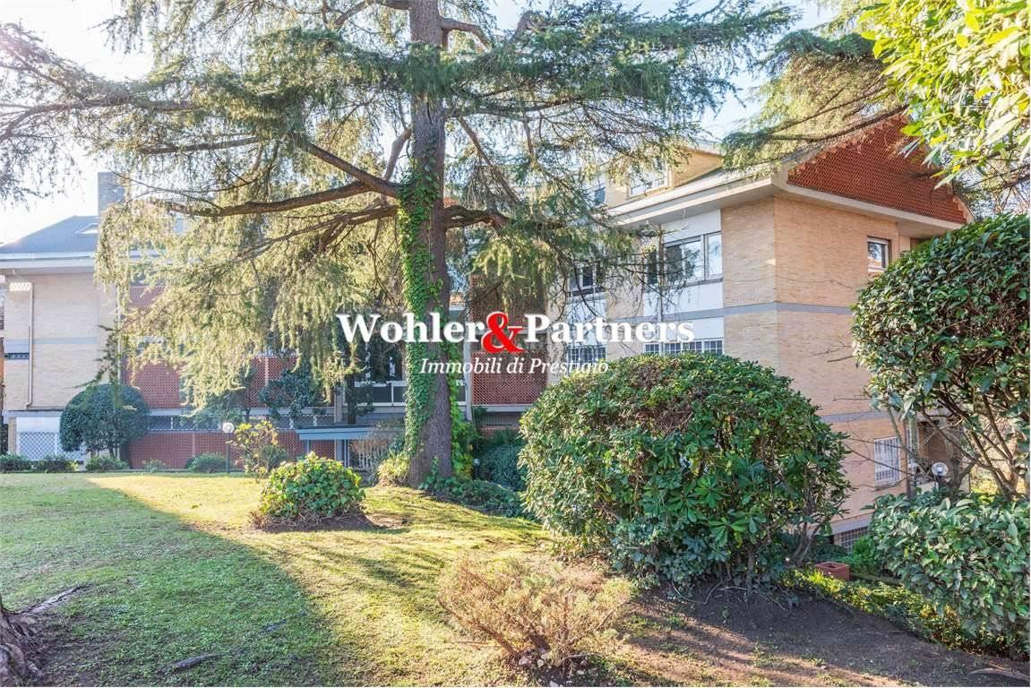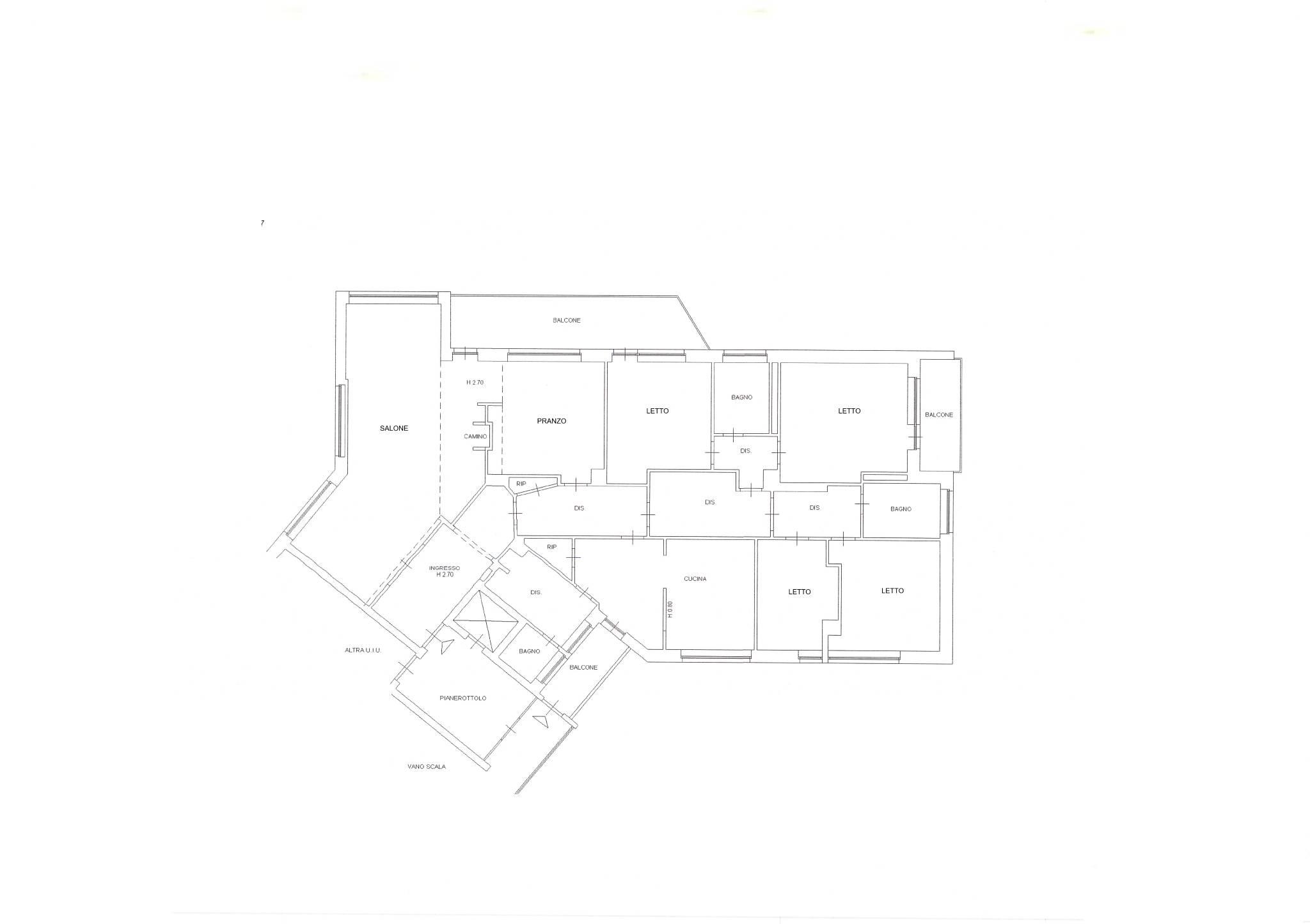 L'immobile è così composto: doppi ingressi, salone doppio con camino e terrazzo adiacente con affaccio sul verde, sala da pranzo, cucina abitabile con terrazzino coperto, camera di servizio con bagno, ripostiglio, zona notte 4 camere da letto con 2 bagni e un balcone.