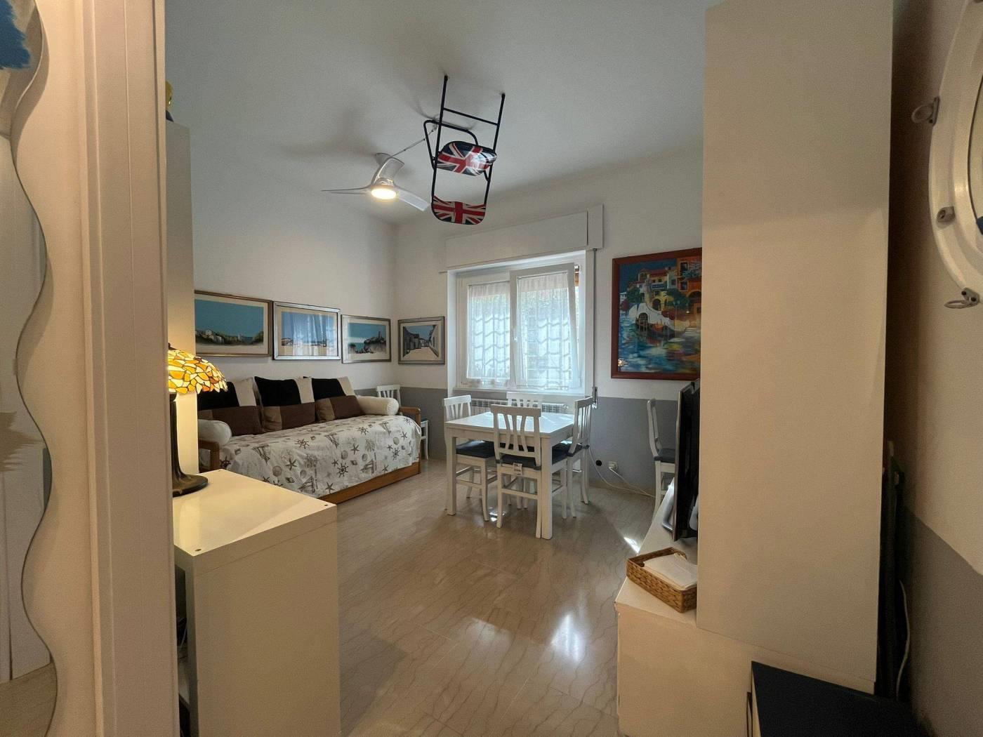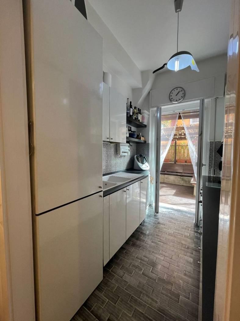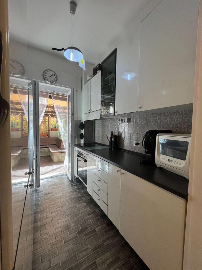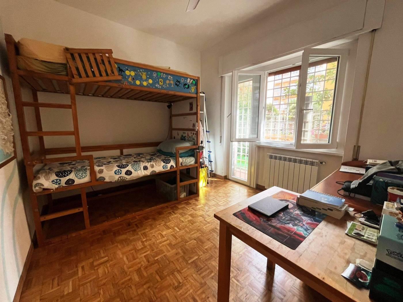 In palazzina rivestita in cortina, proponiamo la vendita di un bell'appartamento in ottimo stato di manutenzione interna, composto da un ingresso con armadio a muro e comodo soppalco, soggiorno, due camere da letto, cucina, bagno e un grande giardino pavimentato, con gazebo e dettagli in legno.