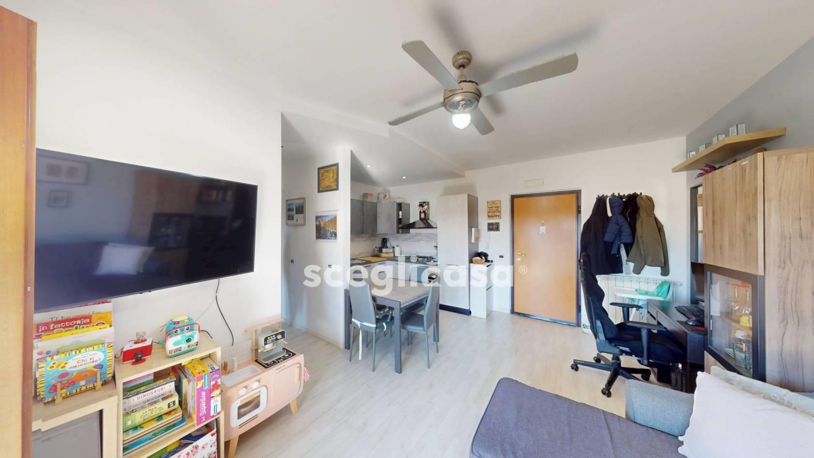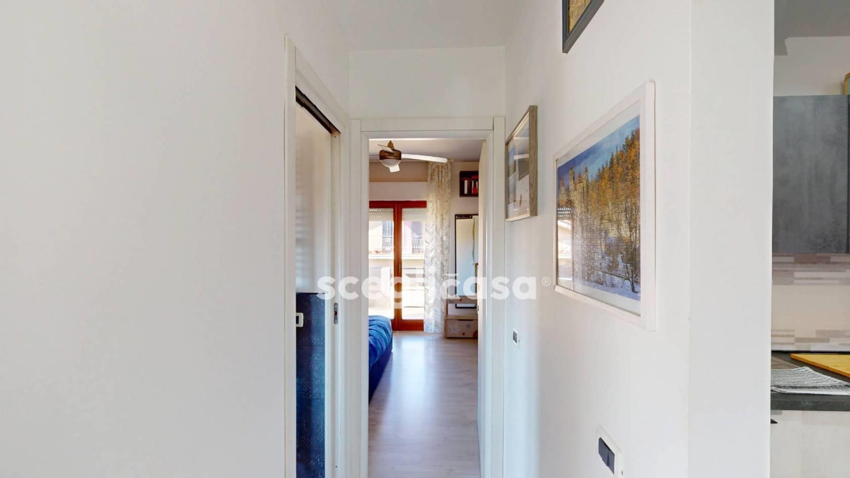 L’appartamento è un comodo bilocale di 55 mq totali oltre terrazze, con distribuzione razionale e contemporanea degli spazi interni.