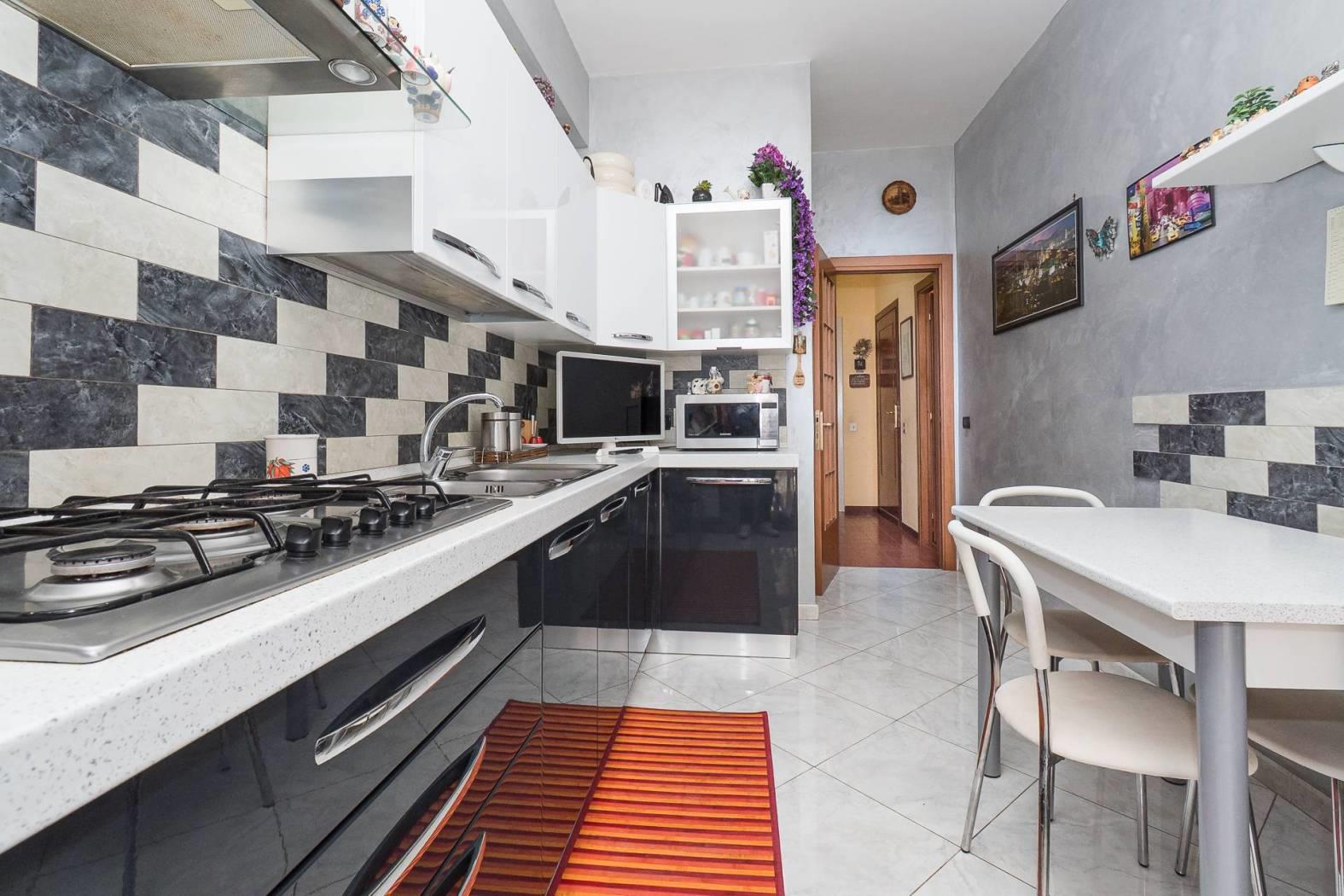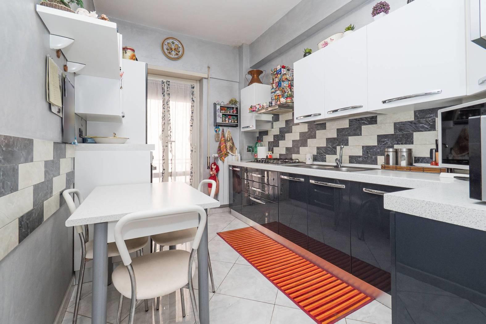 L’appartamento si sviluppa su un ampia metratura: l'ingresso ci porta nella zona giorno composta da un comodo salone e la cucina separata, nella zona notte troviamo due camere matrimoniali, un ripostiglio, bagno finestrato con box doccia e due balconi.