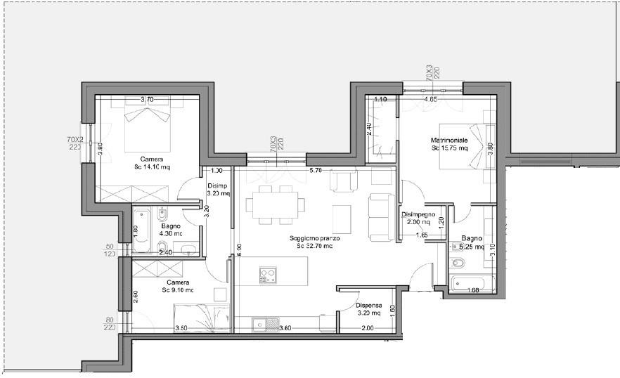 COMPOSIZIONE: 101 mq interni ,ampio salone con cucina a vista, due camere matrimoniali di cui una con cabina armadio, cameretta , due bagni, ripostiglio ad ampio giardino perimetrale di 320 mq