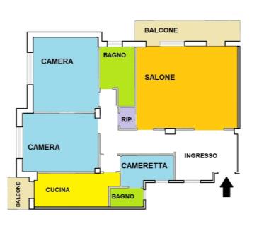 APPARTAMENTO DI 105 MQ COMPOSTO DA: SALONE, CUCINA ABITABILE, 2 CAMERE MATRIMONIALI ( POSSIBILITA' DI RICAVARE 3A CAMERA), 2 BAGNI, AMPIO RIPOSTIGLIO, BALCONE DI CIRCA 15 MQ. FINESTRE IN LEGNO A DOPPIO VETRO, INFERIATE E ZANZARIERE IN TUTTI AMBIENTI FINESTRATI.