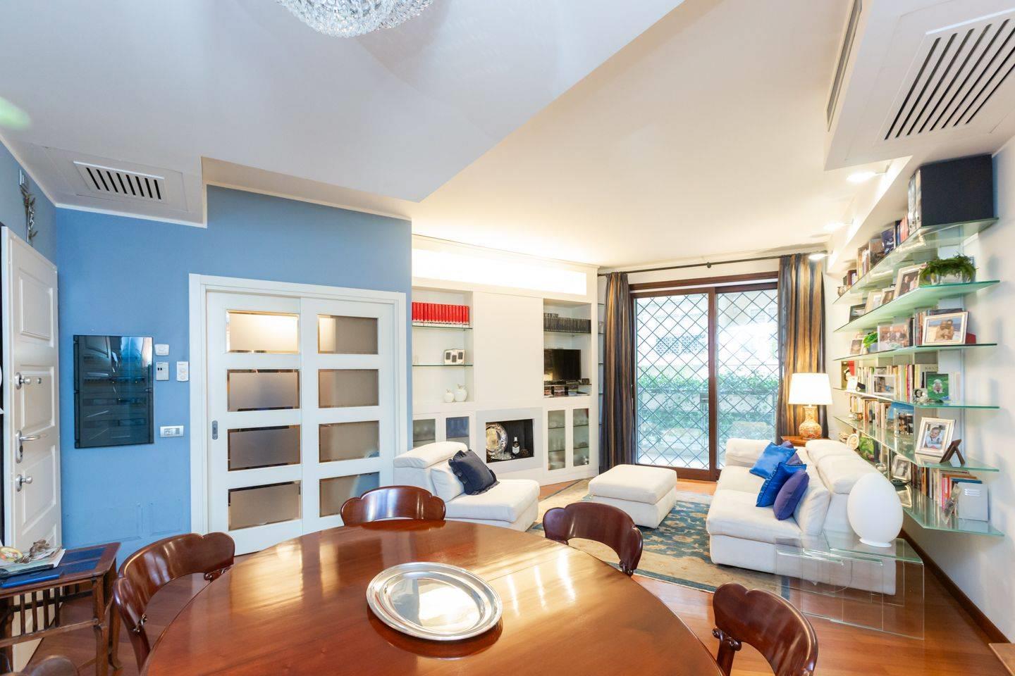La cucina, nuova e attrezzata, è separata dal resto degli ambienti, garantendo funzionalità e praticità. L'appartamento dispone di una cameretta con bagno finestrato e di una camera matrimoniale con bagno cieco, offrendo così il massimo della privacy. Ogni stanza è dotata di aria condizionata, assicurando un clima ideale in ogni stagione.
