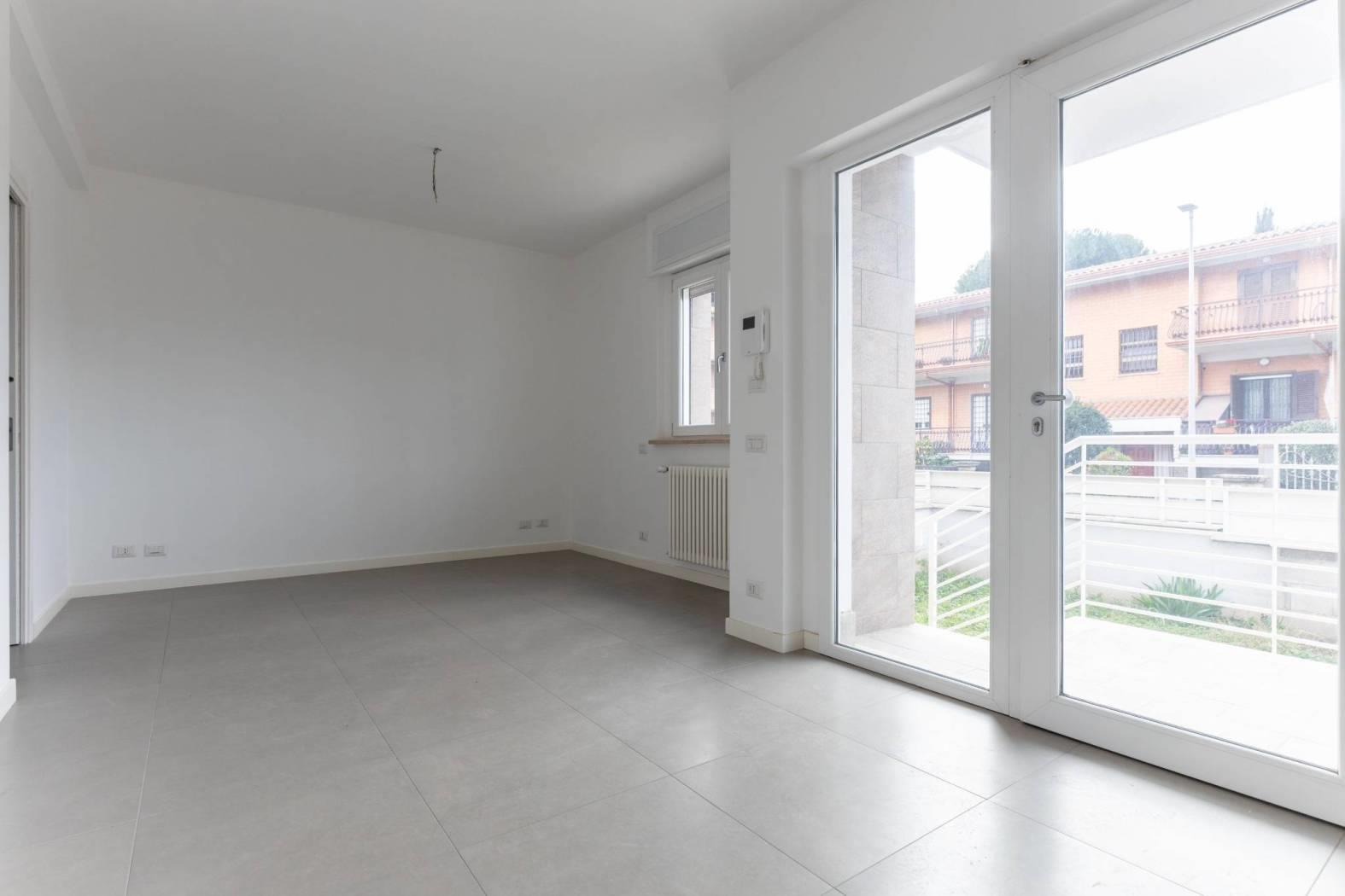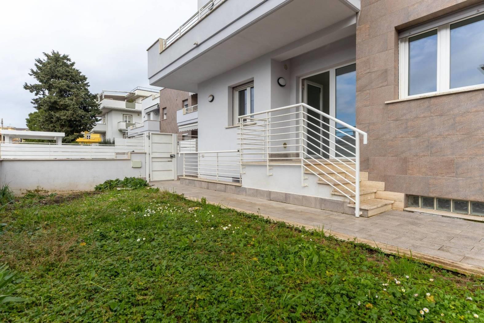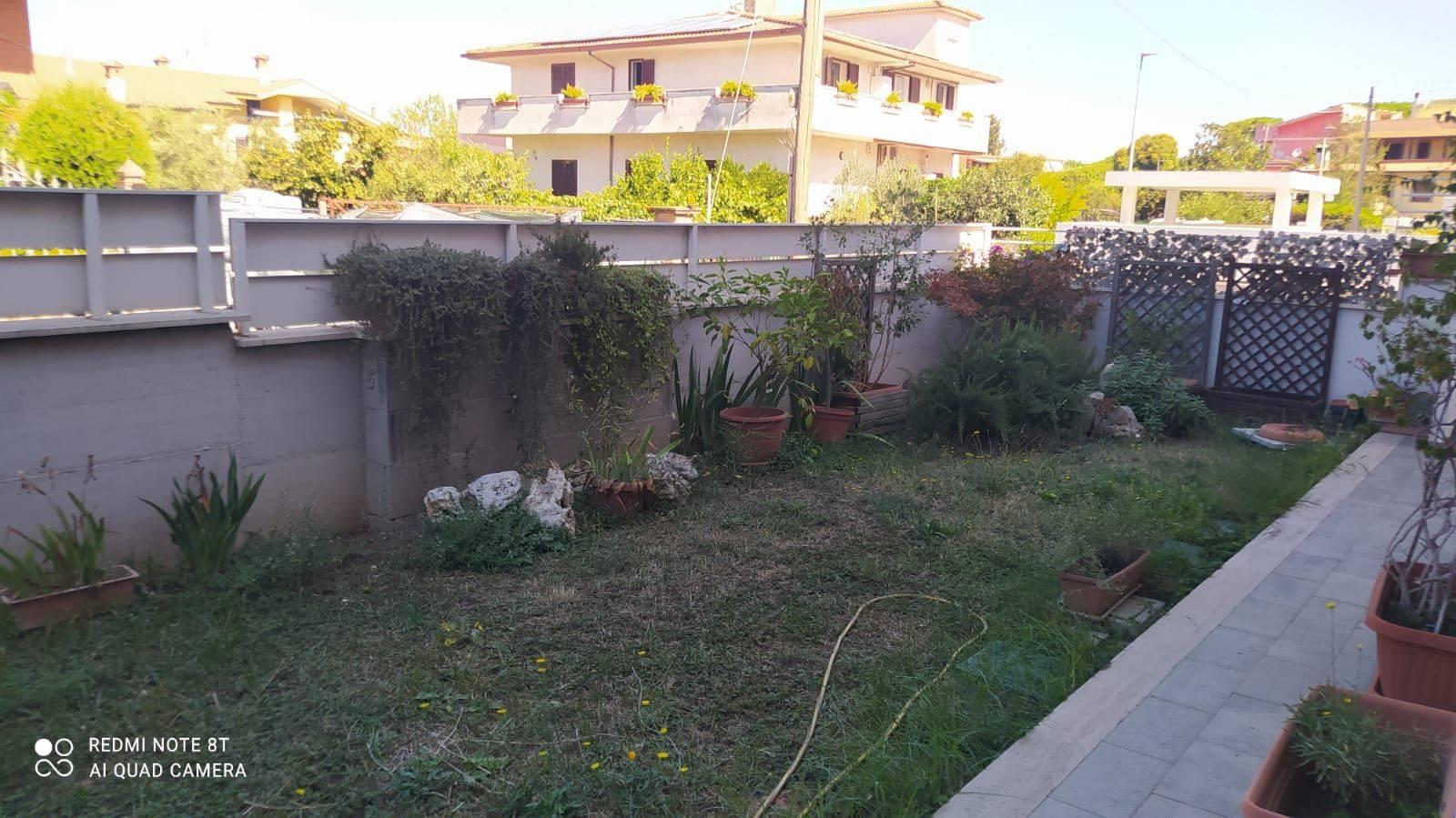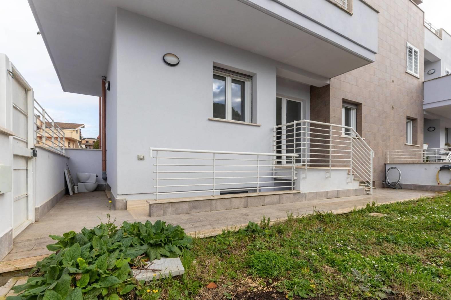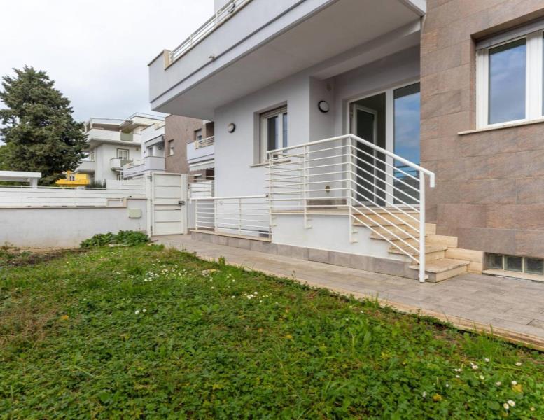 L'appartamento, oggetto di vendita, presenta un'ingresso pedonale indipendente e il suo primo accesso e' su un giardino esclusivo di proprietà. Tre gradini creano l'accesso all'unità immobiliare ed una vetrata doppia antisfondamento crea l'ingresso all'abitazione. Composizione: balcone di ingresso all'appartamento. Dentro: salone doppio con angolo cottura (opportunità di creare cucina chiusa abitabile con finestra), disimpegno, due ampie camere e bagno. L'appartamento presenta due affacci e precisamente la zona a giorno su un giardino esclusivo con esposizione sud/ovest mentre la zona notte su un ampio terrazzamento con esposizione ad est.