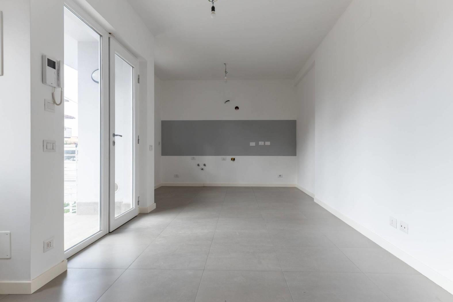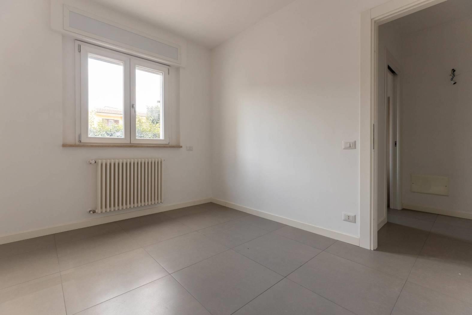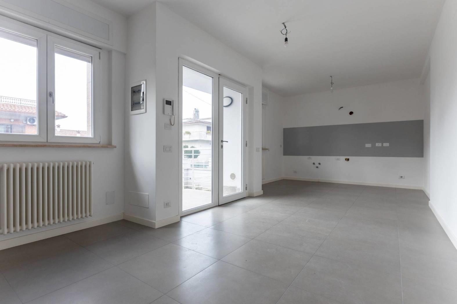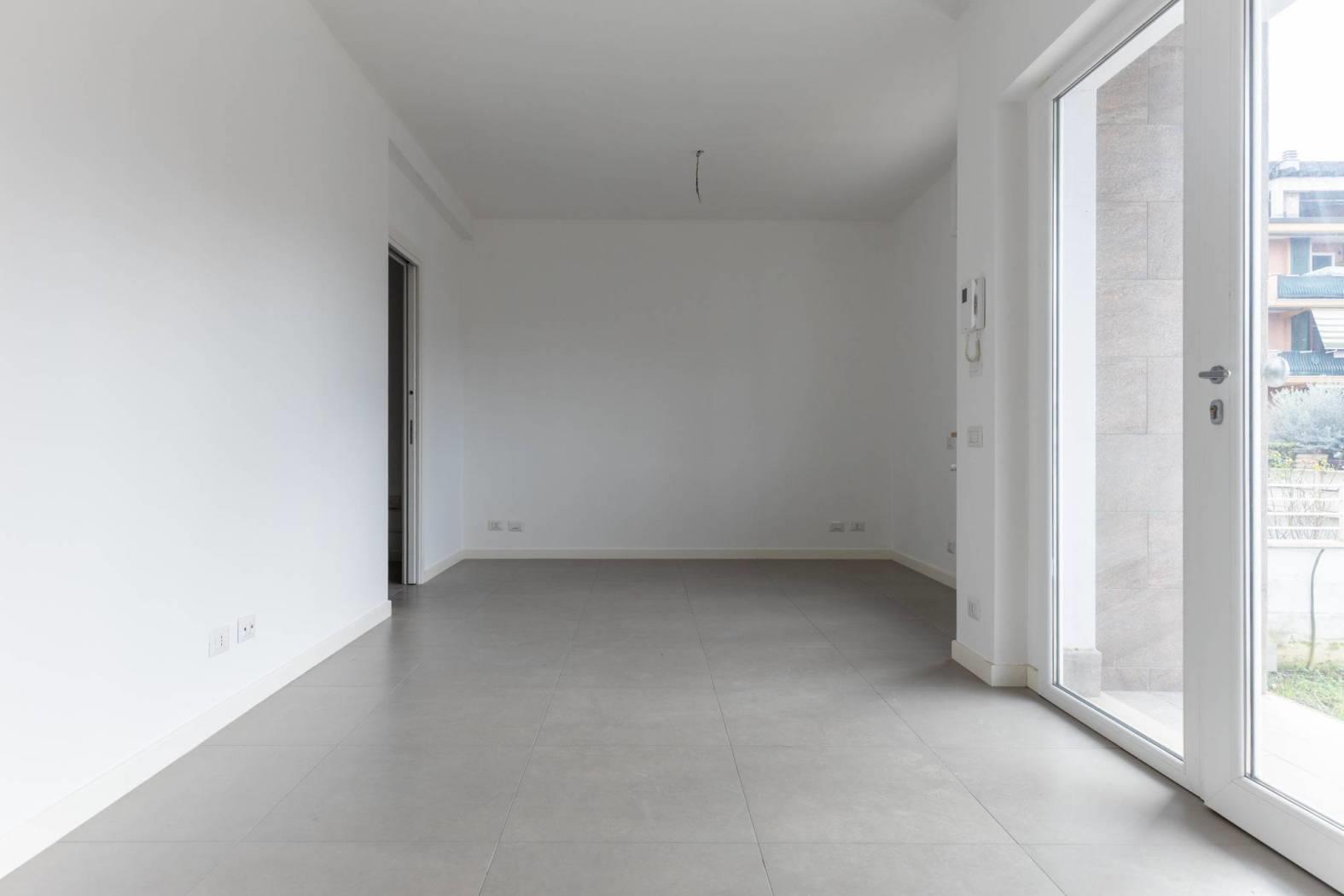 L'appartamento, oggetto di vendita, presenta un'ingresso pedonale indipendente e il suo primo accesso e' su un giardino esclusivo di proprietà. Tre gradini creano l'accesso all'unità immobiliare ed una vetrata doppia antisfondamento crea l'ingresso all'abitazione. Composizione: balcone di ingresso all'appartamento. Dentro: salone doppio con angolo cottura (opportunità di creare cucina chiusa abitabile con finestra), disimpegno, due ampie camere e bagno. L'appartamento presenta due affacci e precisamente la zona a giorno su un giardino esclusivo con esposizione sud/ovest mentre la zona notte su un ampio terrazzamento con esposizione ad est.