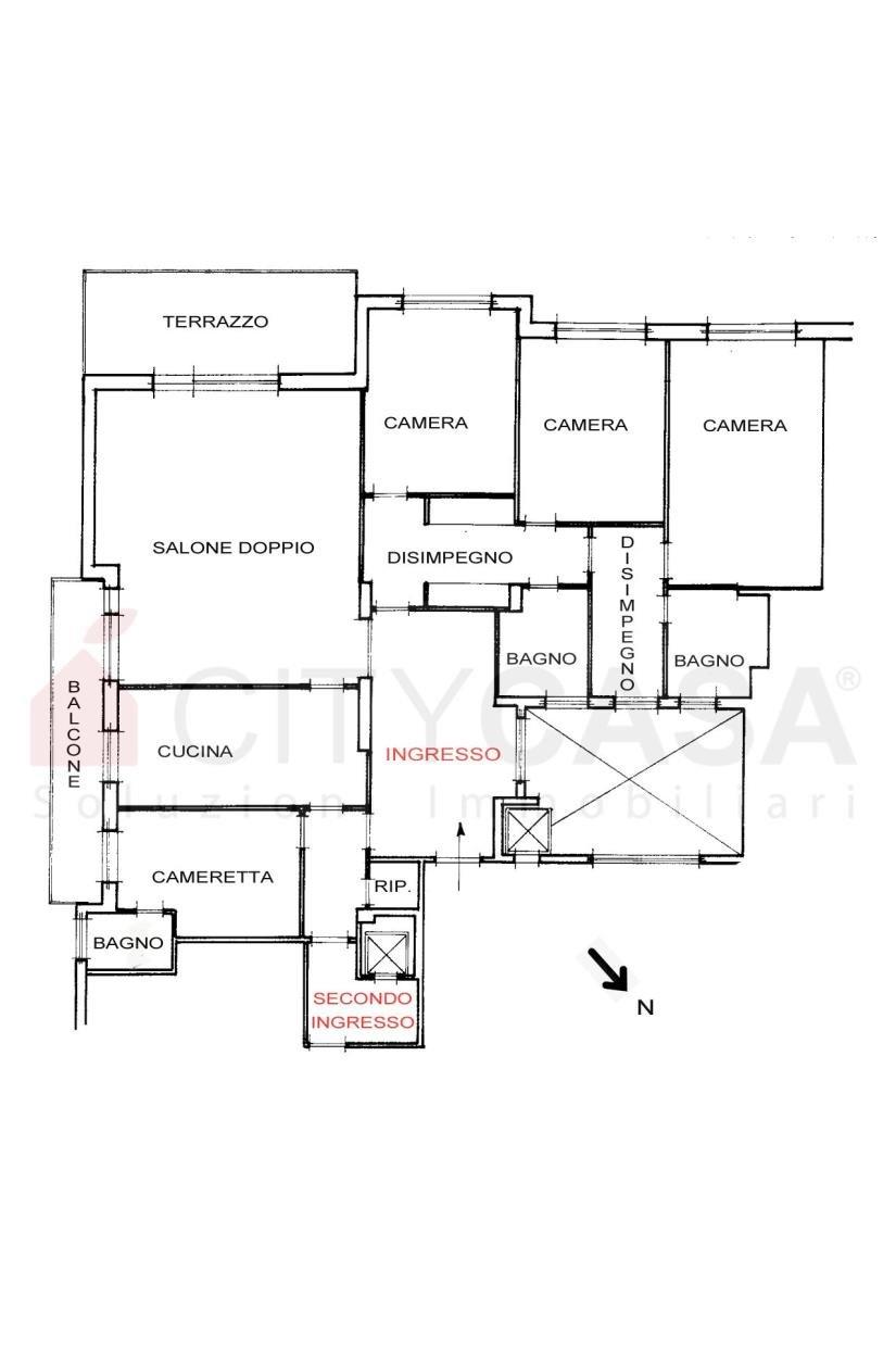 L'immobile si compone di: Ampio Ingresso con Finestra, Salone Doppio con accesso diretto al Balcone e al Terrazzo vivibile perfetto per momenti di relax o convivialità, Cucina Abitabile con accesso al Balcone, 4 Camere, 3 Bagni, Ampi Disimpegni con Armadi a Muro, Ripostiglio, Balcone, TERRAZZO. Completa la proprietà una Comoda CANTINA di forma regolare.