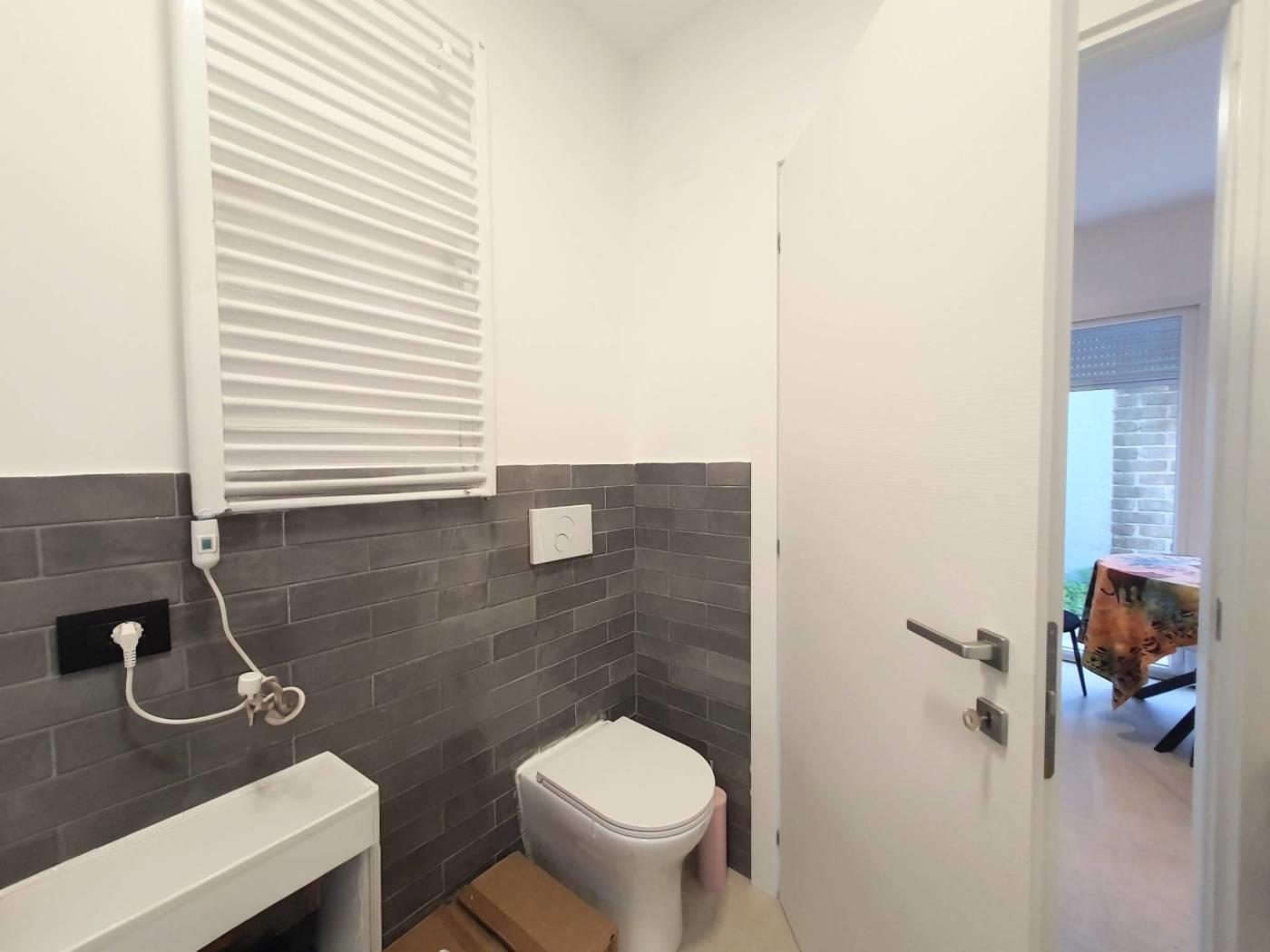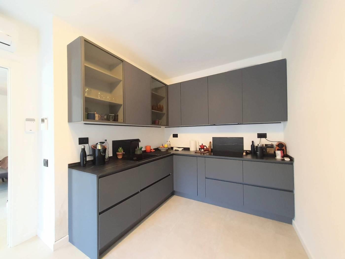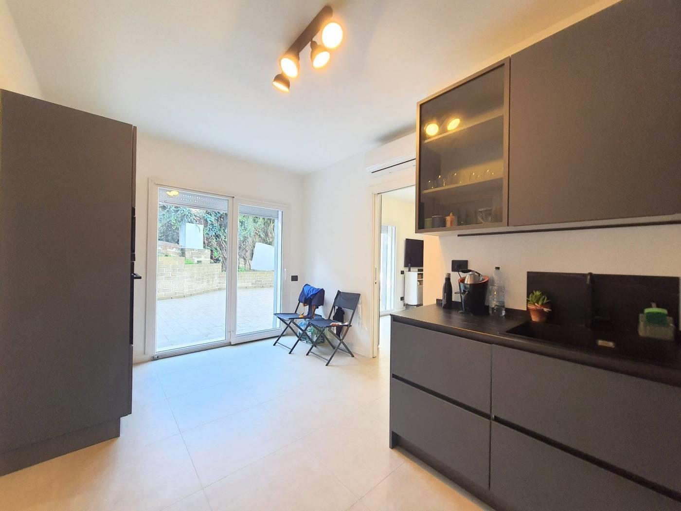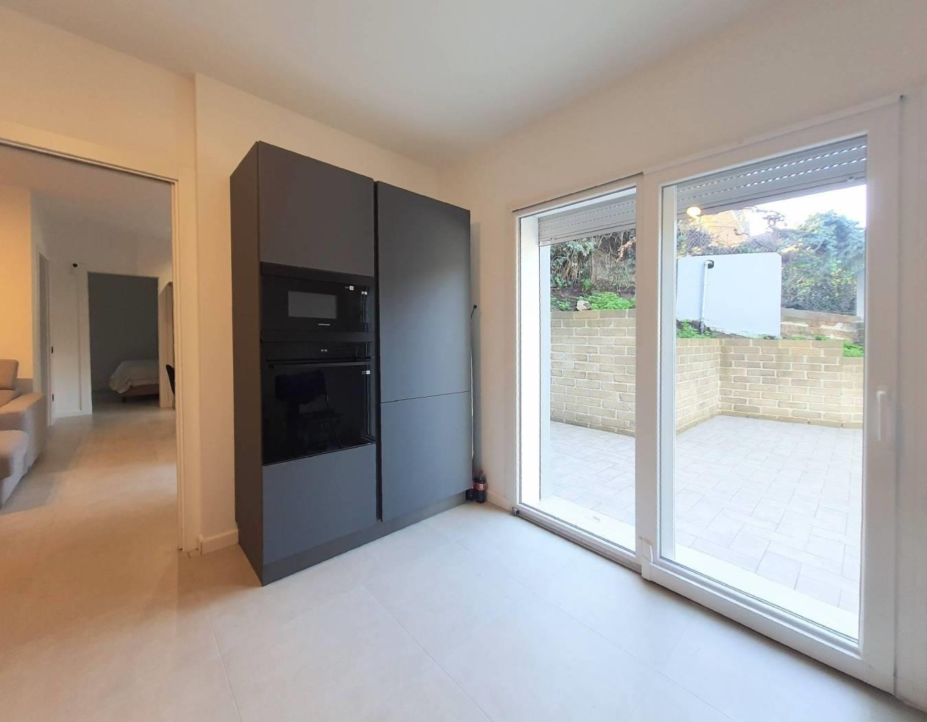 In the residential Isola Farnese, vicinity International Schools, ample apartment with private garden in energy level A of new construction, resulting from the joining of two properties, consisting of living room, live-in kitchen, two bedrooms, two bathrooms, possibility of a third bedroom replacing the kitchen; predisposition for a kitchenette available in the living room, and ample private garden of approx. 200 sqm