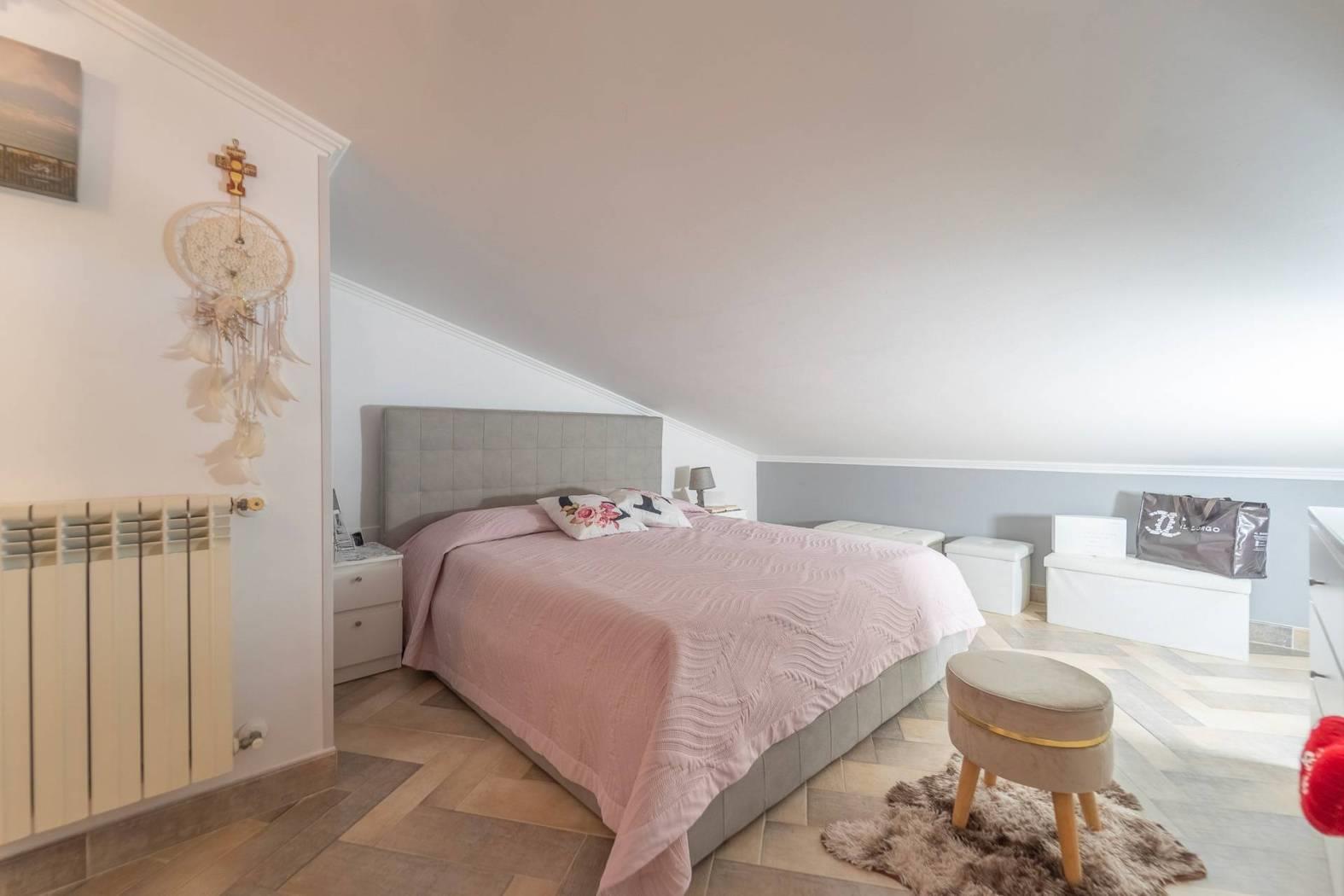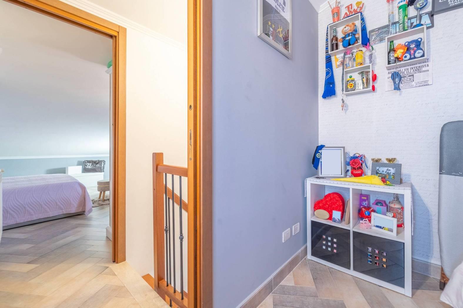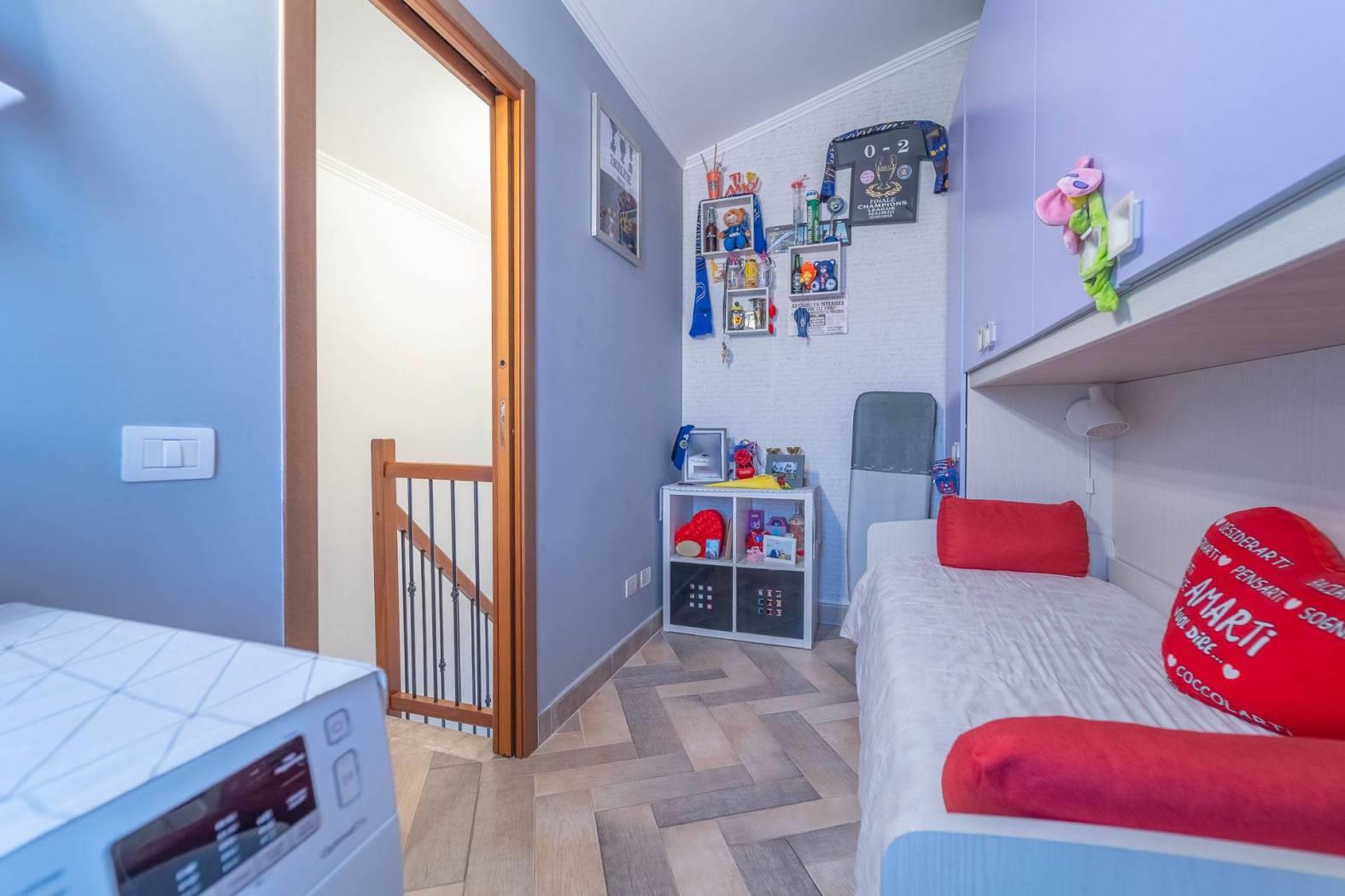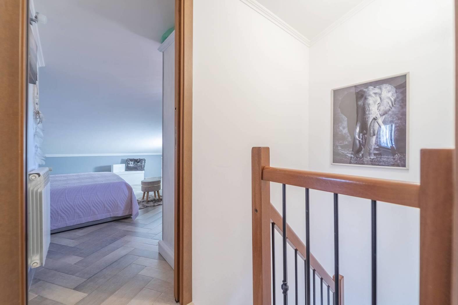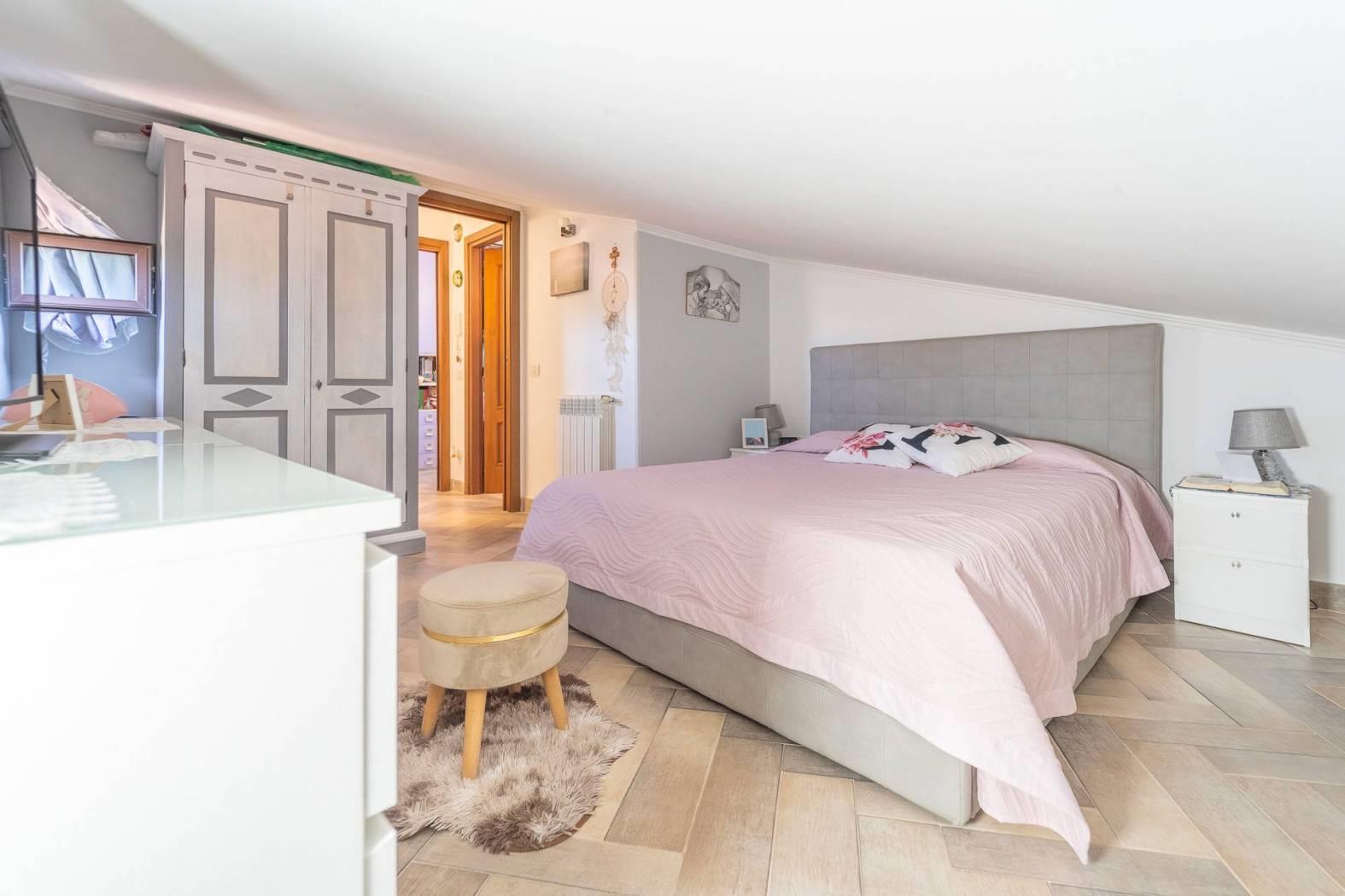 Tramite una scala interna in legno si accede al piano superiore, dove si sviluppa la zona notte, caratterizzata da un soffitto spiovente che conferisce personalità agli ambienti, composta da una camera matrimoniale accogliente e silenziosa, una seconda camera versatile e funzionale, perfetta come stanza per bambini, studio o ospiti, ed un secondo bagno, finestrato e dotato di box doccia. A completare la proprietà, al piano terra, troviamo un' area comune utilizzata in accordo tra le unità presenti nello stabile come posto auto.