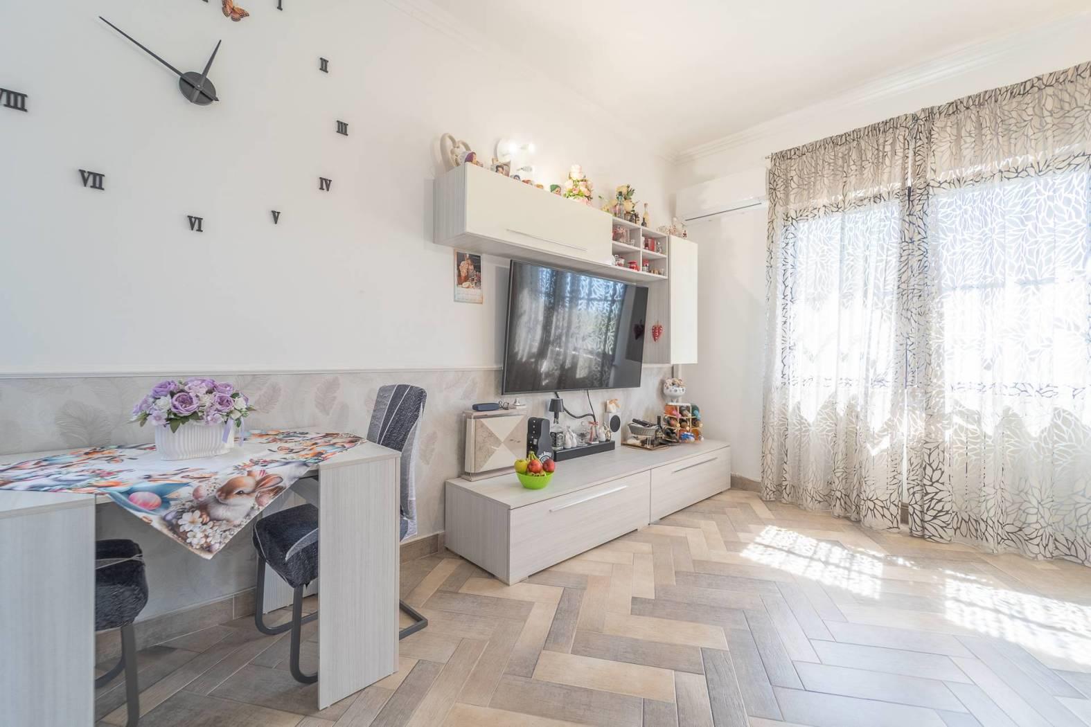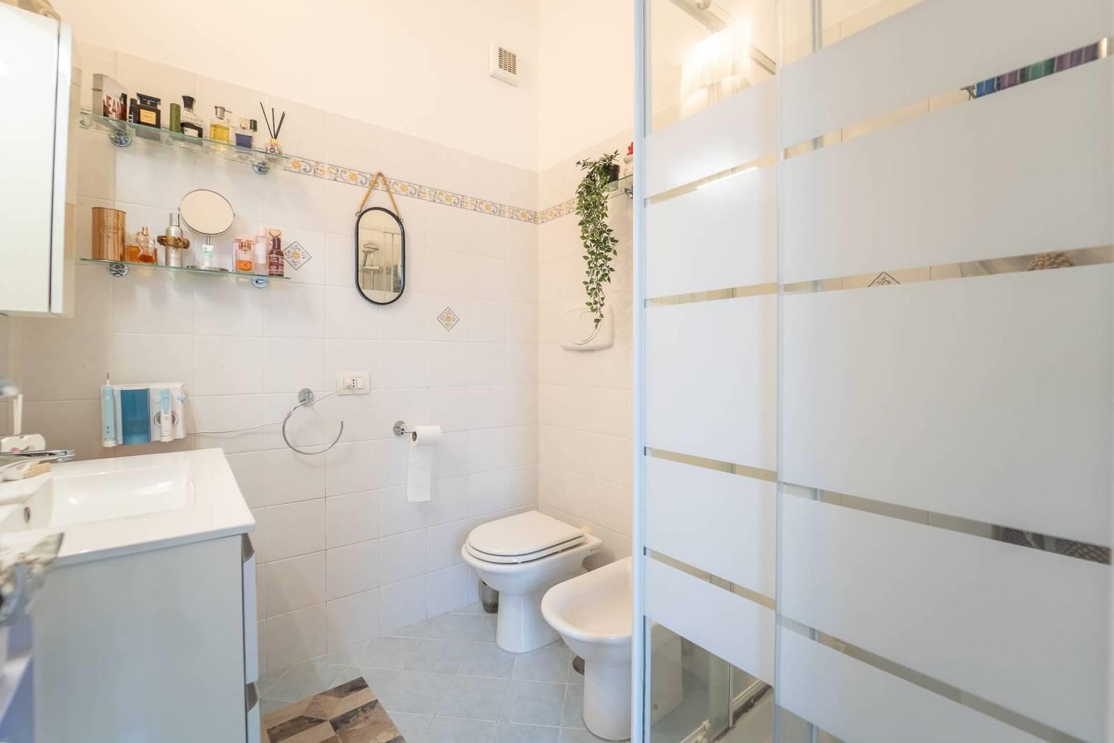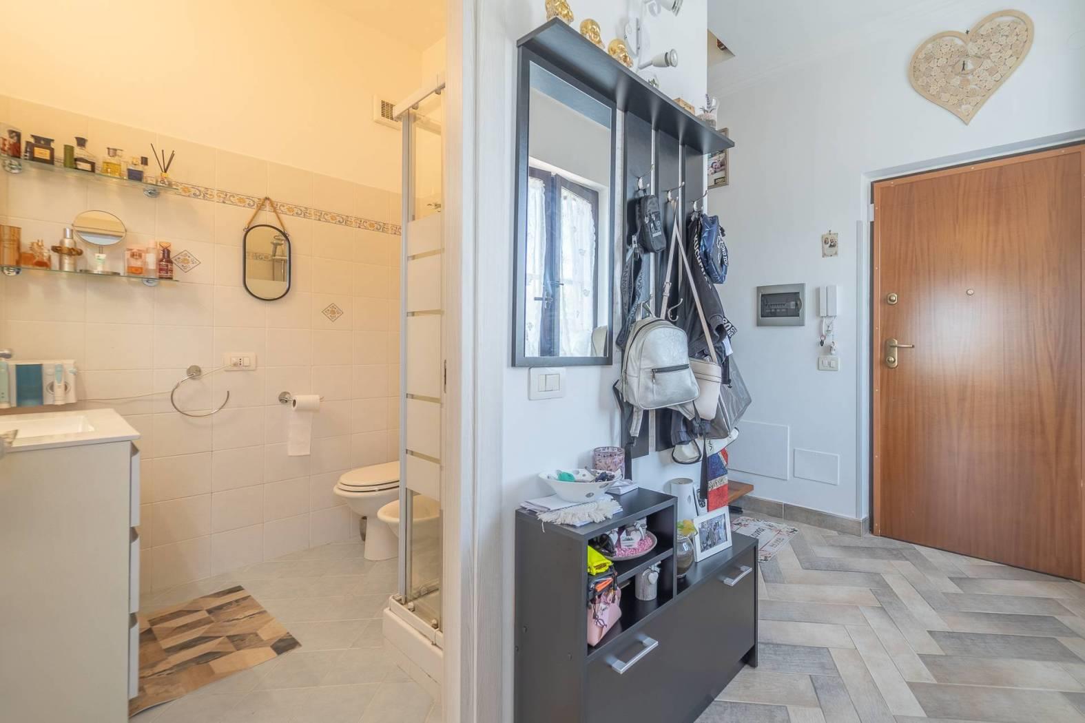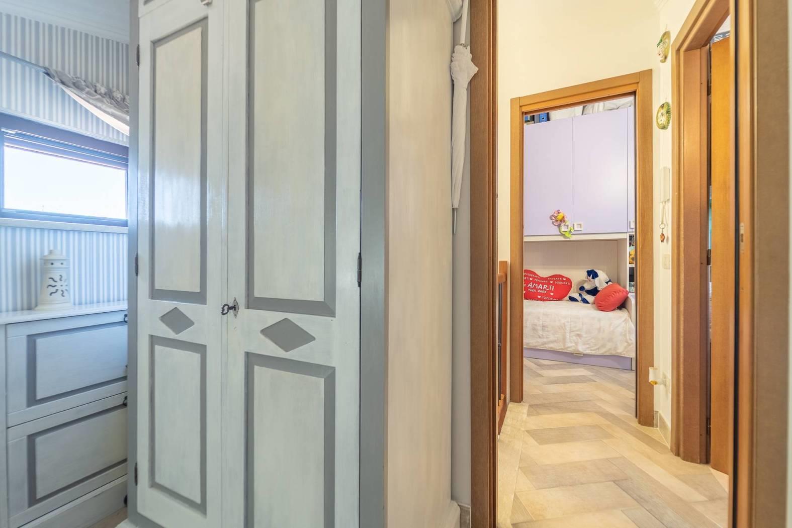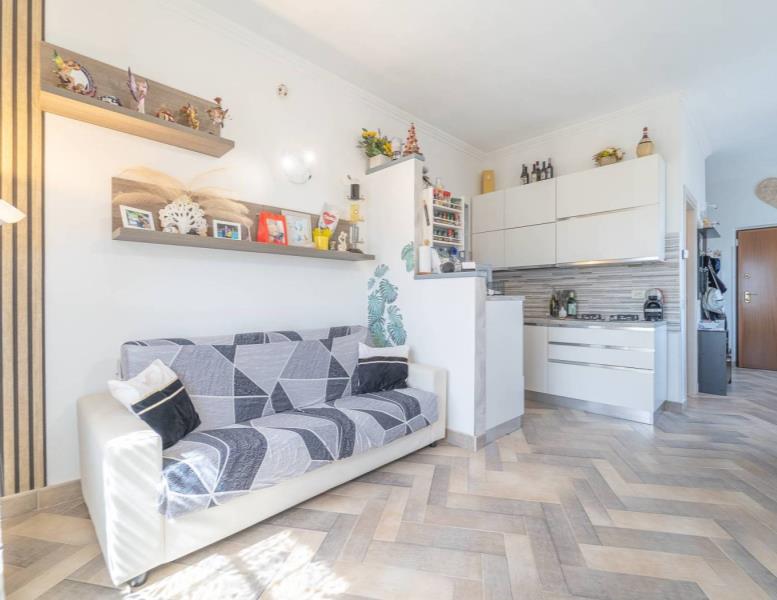 Appena varcata la porta d’ingresso, si viene accolti da un ambiente moderno e ben organizzato. Sulla destra si trova il primo bagno di servizio, completo di box doccia e sistema di areazione. Proseguendo, si apre un soggiorno contemporaneo con angolo cottura a vista, valorizzato dalla doppia esposizione sud-est che garantisce una piacevole luce naturale per tutto il giorno. Uno spazio pensato per vivere in armonia, perfetto tanto per il relax quotidiano quanto per momenti di convivialità.