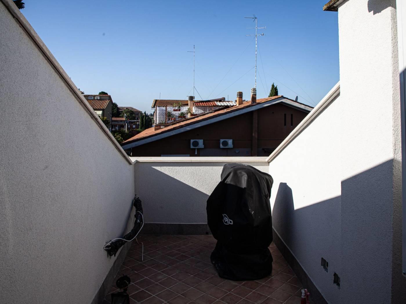 Dal soggiorno si accede al secondo terrazzo, ideale per momenti di relax all’aperto, con vista panoramica sulla zona circostante e perfetto per godere del clima romano.