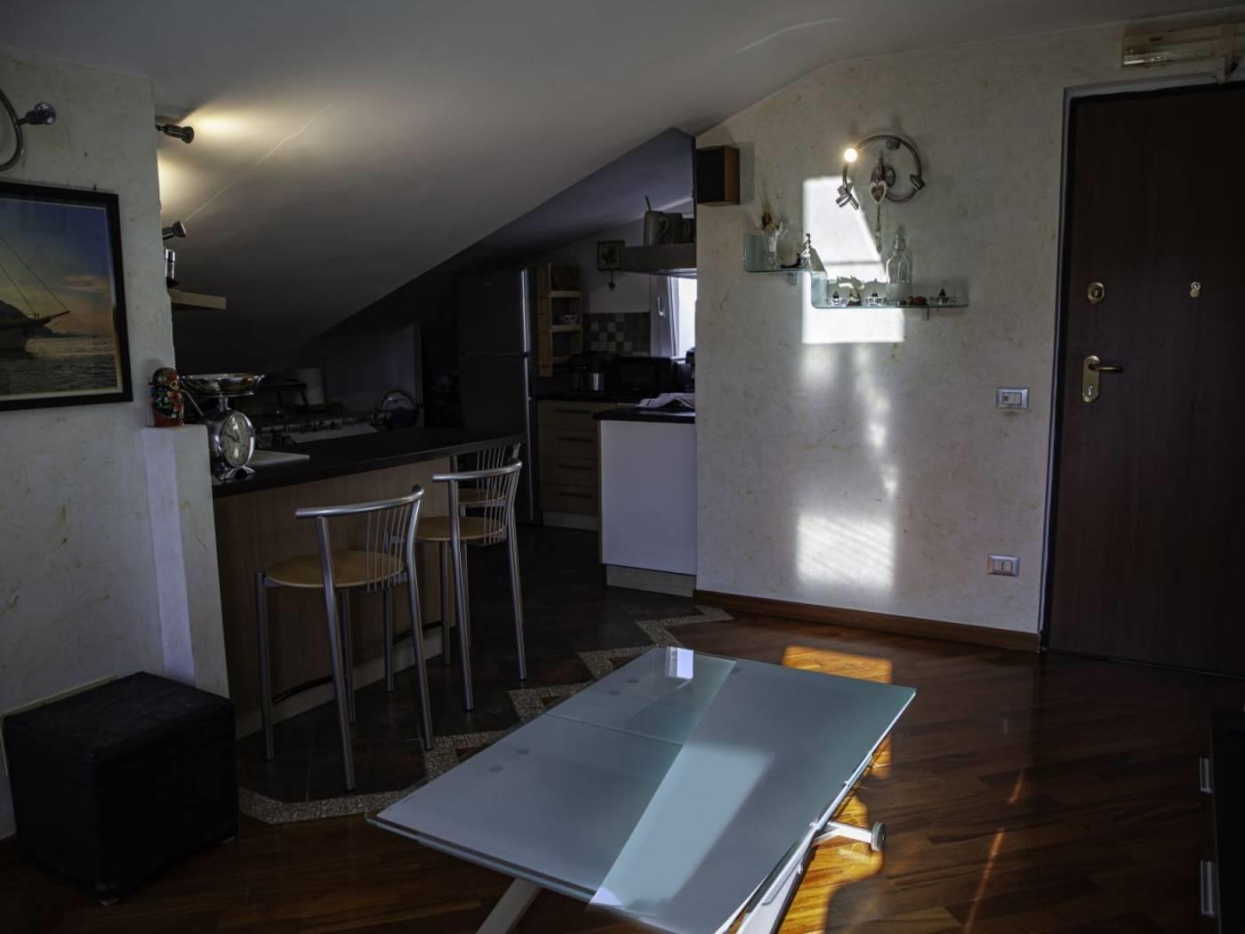 Thinkhome prone in vendita In zona Giustiniana, in posizione strategica e servitissima, a pochi passi dalla stazione ferroviaria e adiacente a tutti i principali servizi, un appartamento mansardato abitabile posto al quinto ed ultimo piano di una palazzina servita da ascensore fino al quarto piano.