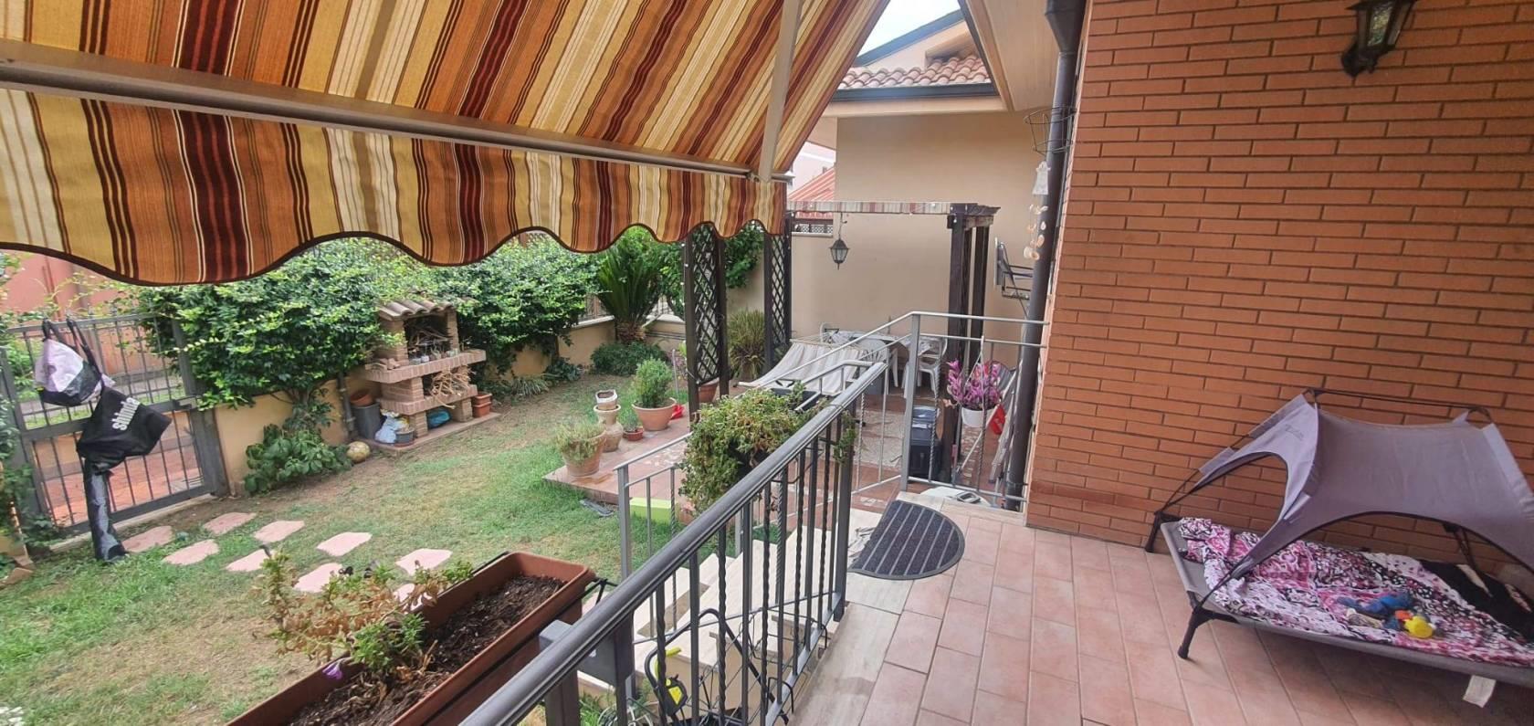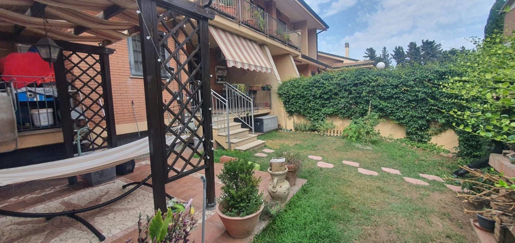 L’immobile si apre su un curato giardino di proprietà, attrezzato con un elegante gazebo e un’area barbecue ideale per momenti di relax e convivialità all’aperto.