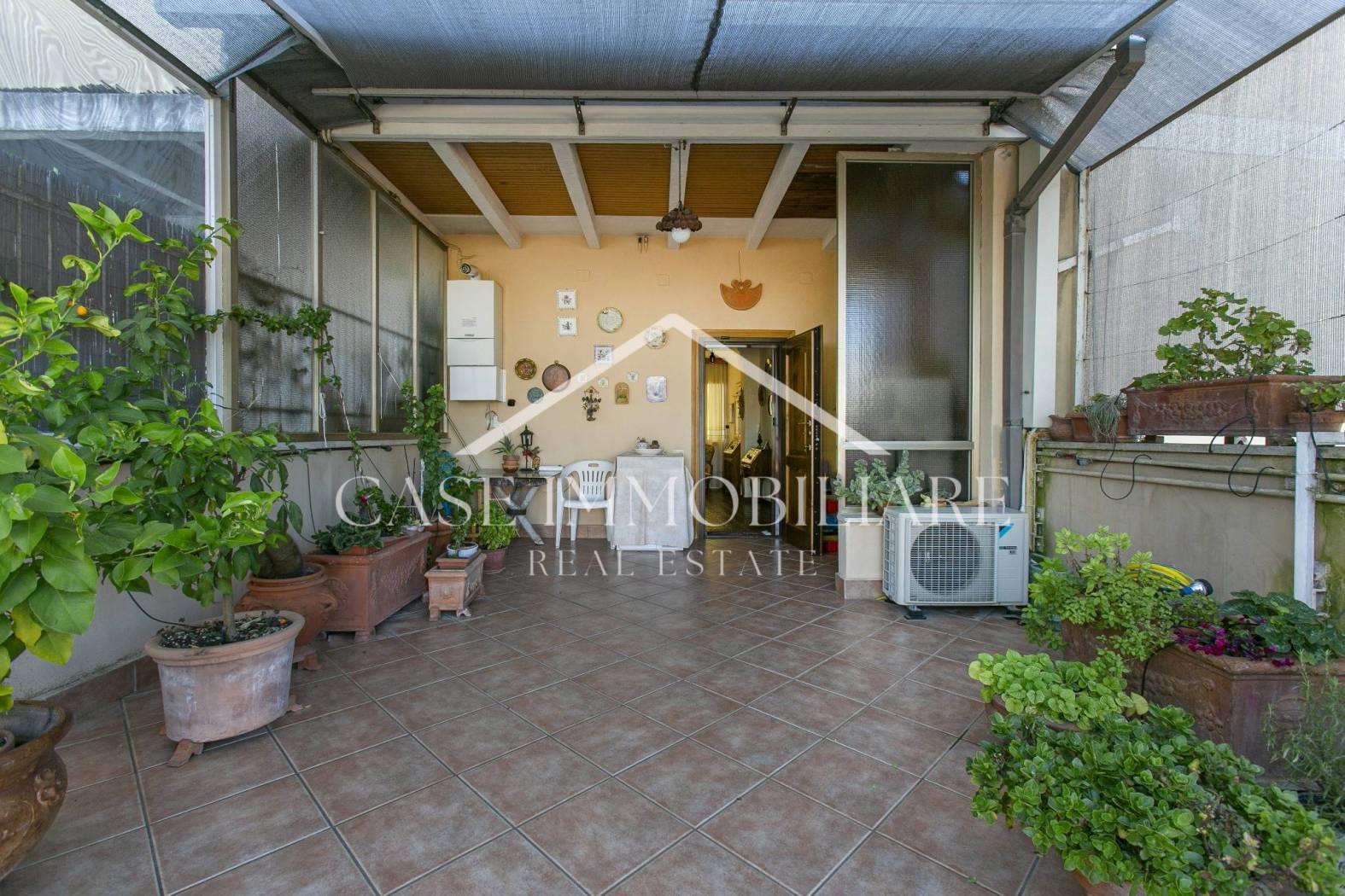L'appartamento di circa 120 mq è composto da un ampio ingresso, una confortevole zona giorno con uscita al balcone e al terrazzo di 45 mq, una comoda cucina abitabile, una camere padronale matrimoniale ed una seconda camere anch’essa con uscita al balcone privato ed infine un bagno finestrato con doccia.
